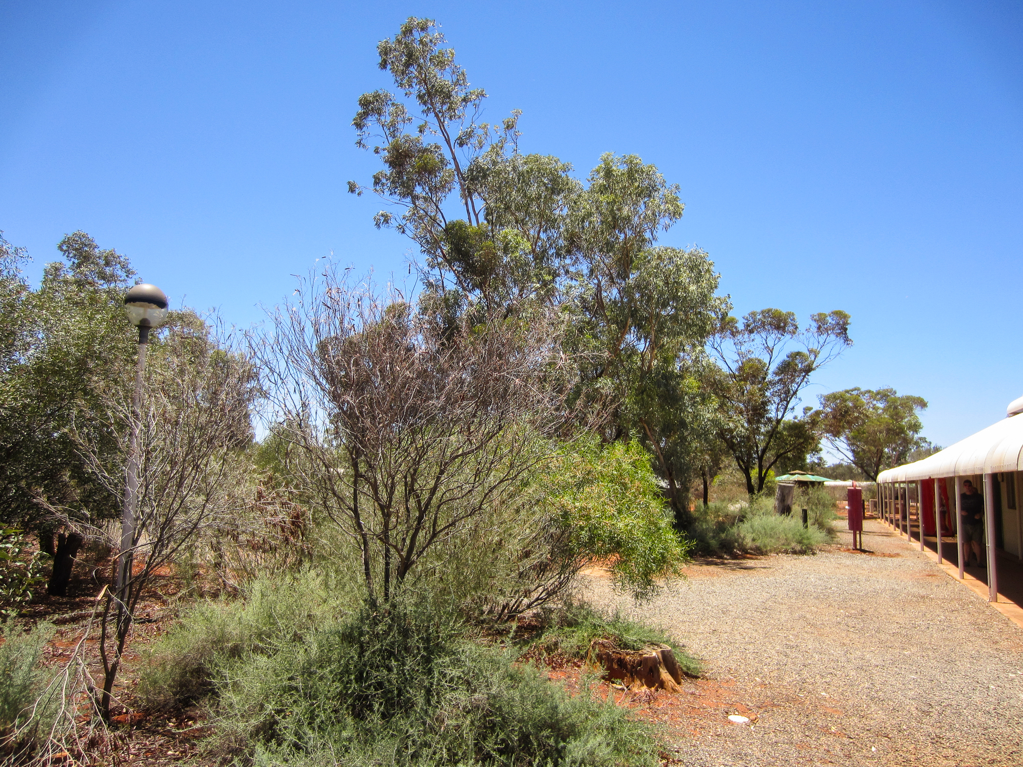 Hier im Ayers Rock Resort wird es tagsüber im November schon wärmer als 41°C, da wunderte es uns doch etwas, dass der Pool sehr kalt war. Doch war das genau richtig und sehr angenehm. In der Sonne am Pool trockneten wir dann doch wieder sehr schnell. Die Wege im Resort waren alle gepflegt und fest. Teilweise auch geteert. Nachts gab es ausreichend Beleuchtung, um den Weg zu finden, aber nicht zu viel, um Tiere anzulocken oder die Sterne zu überblenden.