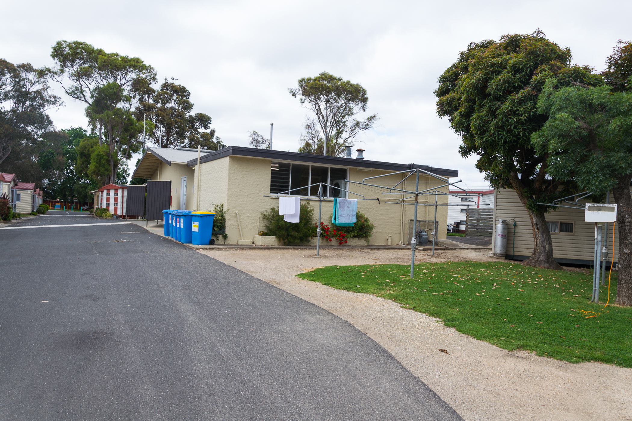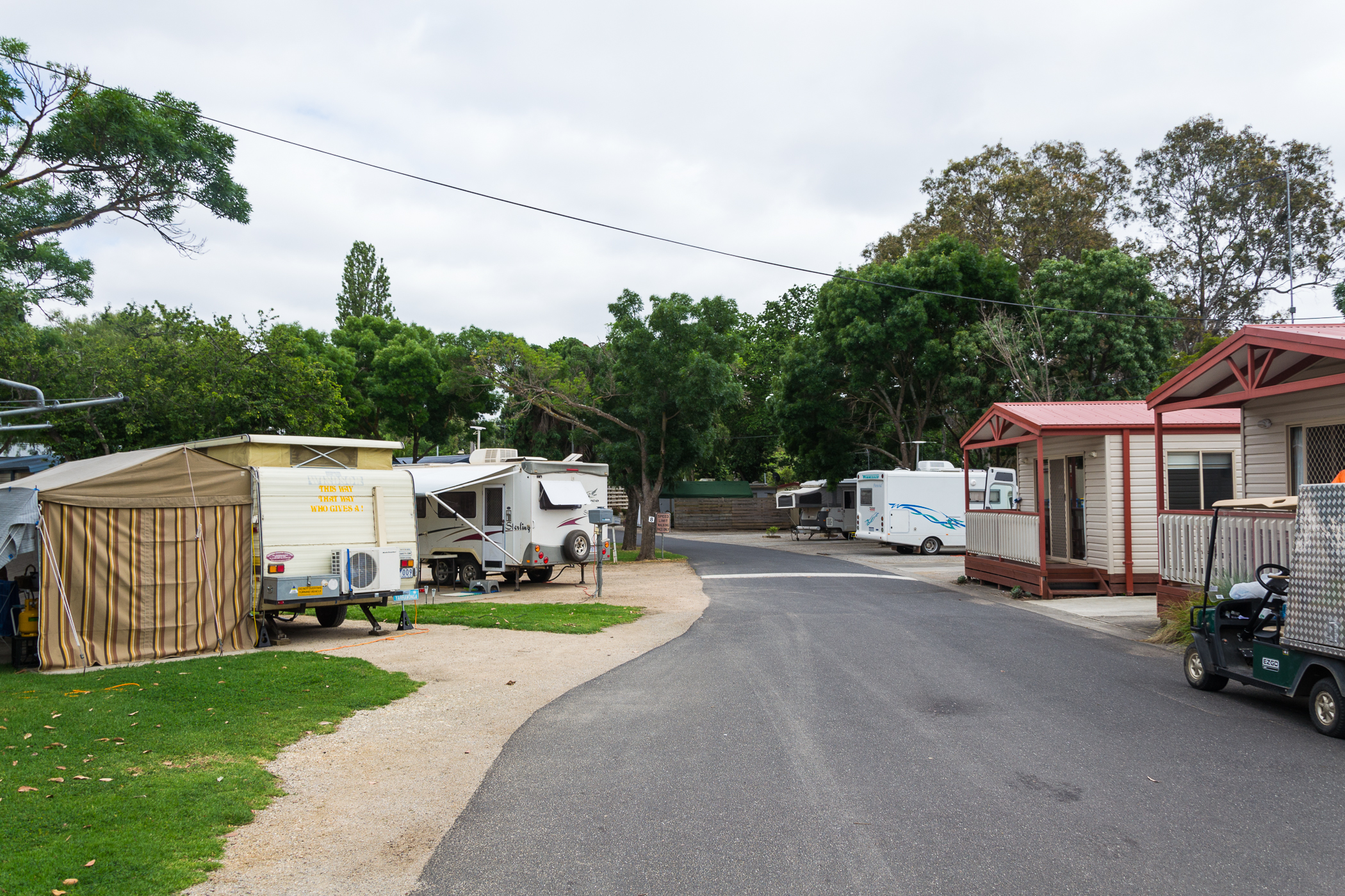Geelong ist eine recht große Stadt, wir mussten also ein ganzes Stück fahren bis wir den Barwon River Holiday Park erreichten. Ganz in der Nähe ist Coles, ein Supermarkt. Eigentlich liegt der Campingplatz am Ende eines Gewerbegebietes. Der Barwon River Holiday Park war enger bebaut als die anderen Campingplätze.