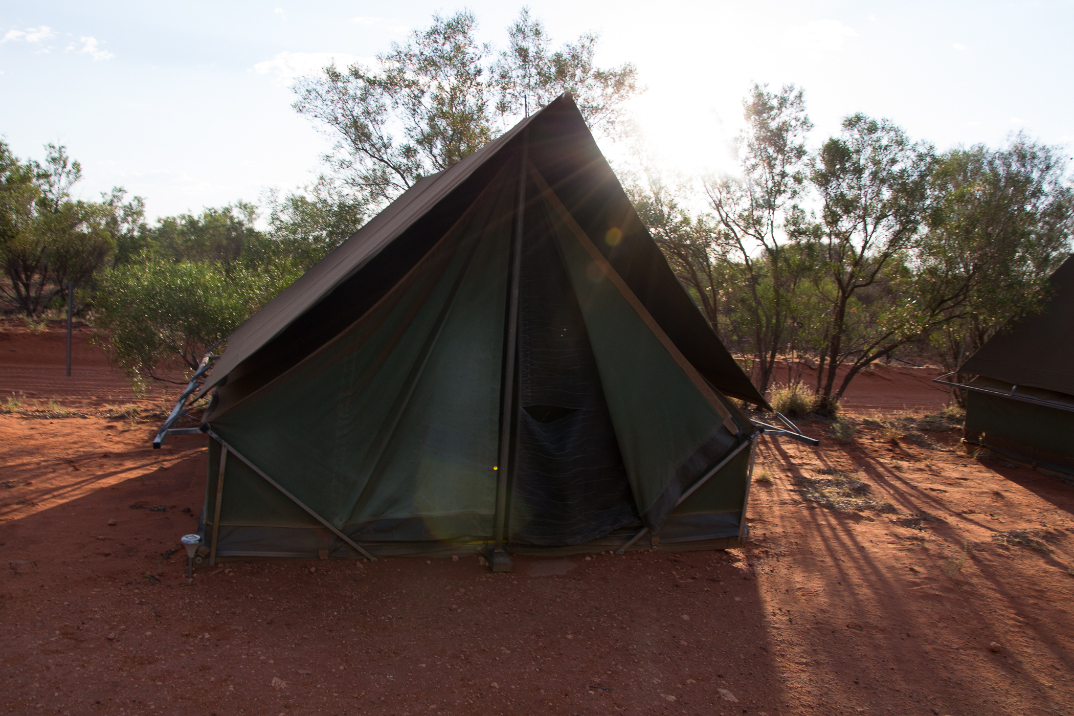 Über holprige Straßen ging es dann bis zu unserem Campingplatz. Eigentlich hätten wir auf der Kings Creek Cattle Station ganz abseits übernachten sollen, doch funktionierte dort das Wasser nicht. Und Wasser ist hier sehr wichtig, dann es ist tagsüber brutal heiß. Wir mussten die Holper Strecke dann wieder zurück fahren zu einem Platz, auch mit festen Zelten, der Wasser und Strom hatte. Die Zelte waren hier leider nicht mehr ganz in Ordnung. Die Netze hatten doch einige Risse.