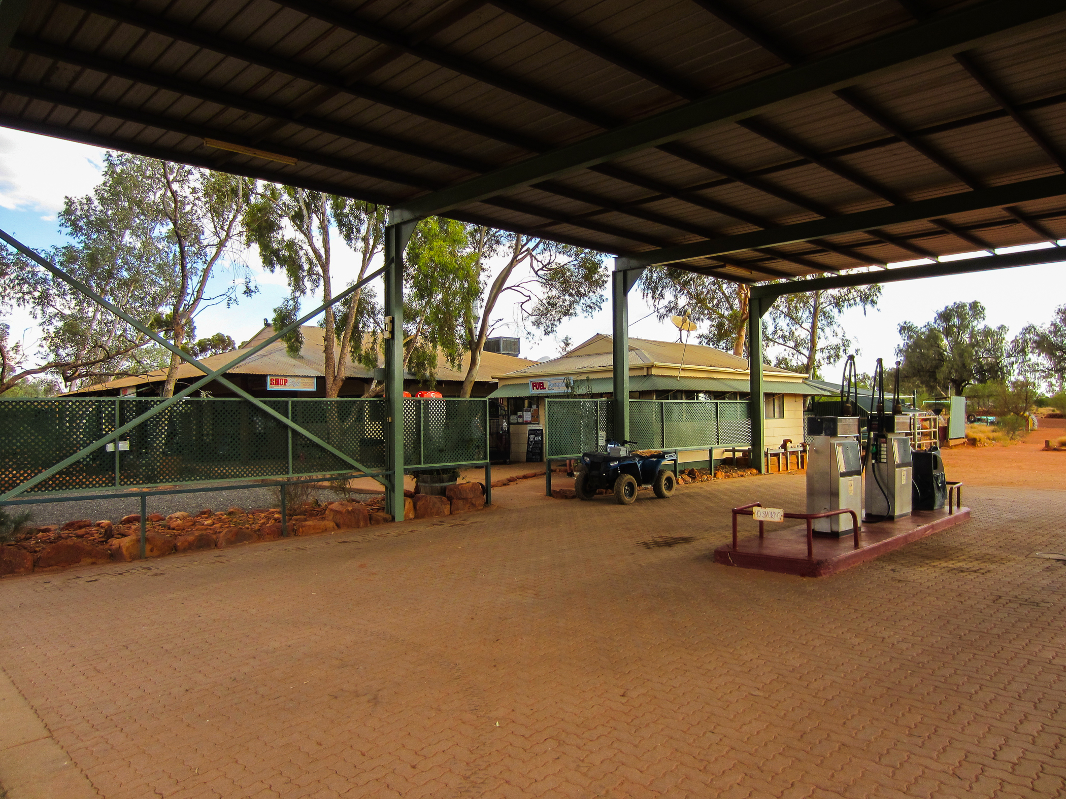 Am Eingang erwartete uns ein Helikopter, unser Guide pries auch gleich den Flug an. Doch keiner buchte einen Rundflug. Im kleinen Kiosk am Eingang der Kings Creek Cattle Station kauften wir uns ein paar kalte Getränke. Hier bekommst du aber auch warmes Essen. Direkt daneben ist auch eine kleine Tankstelle. Die Tankstellen hier erinnern mich immer an die alten Tankstellen in Deutschland. Eine Sorte pro Zapfsäule.