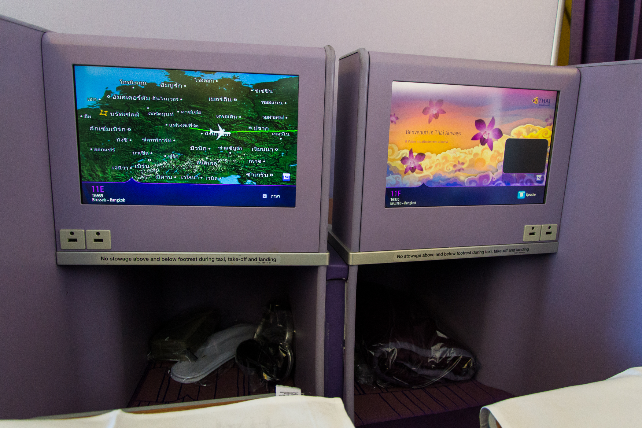In Brüssel am Flughafen wählte ich die falsche Richtung. Und wir mussten dann mit dem Bus das Terminal wechseln, da es keinen anderen Weg mehr gab. Wir konnten aber dann in der Brussel Airlines Lounge noch etwas Energie tanken. Denn jetzt um 13:30 startete der Flug mit Thai Airways nach Bangkok. Die anvisierten ca. 10 Stunden Flugzeit wurden auch eingehalten.