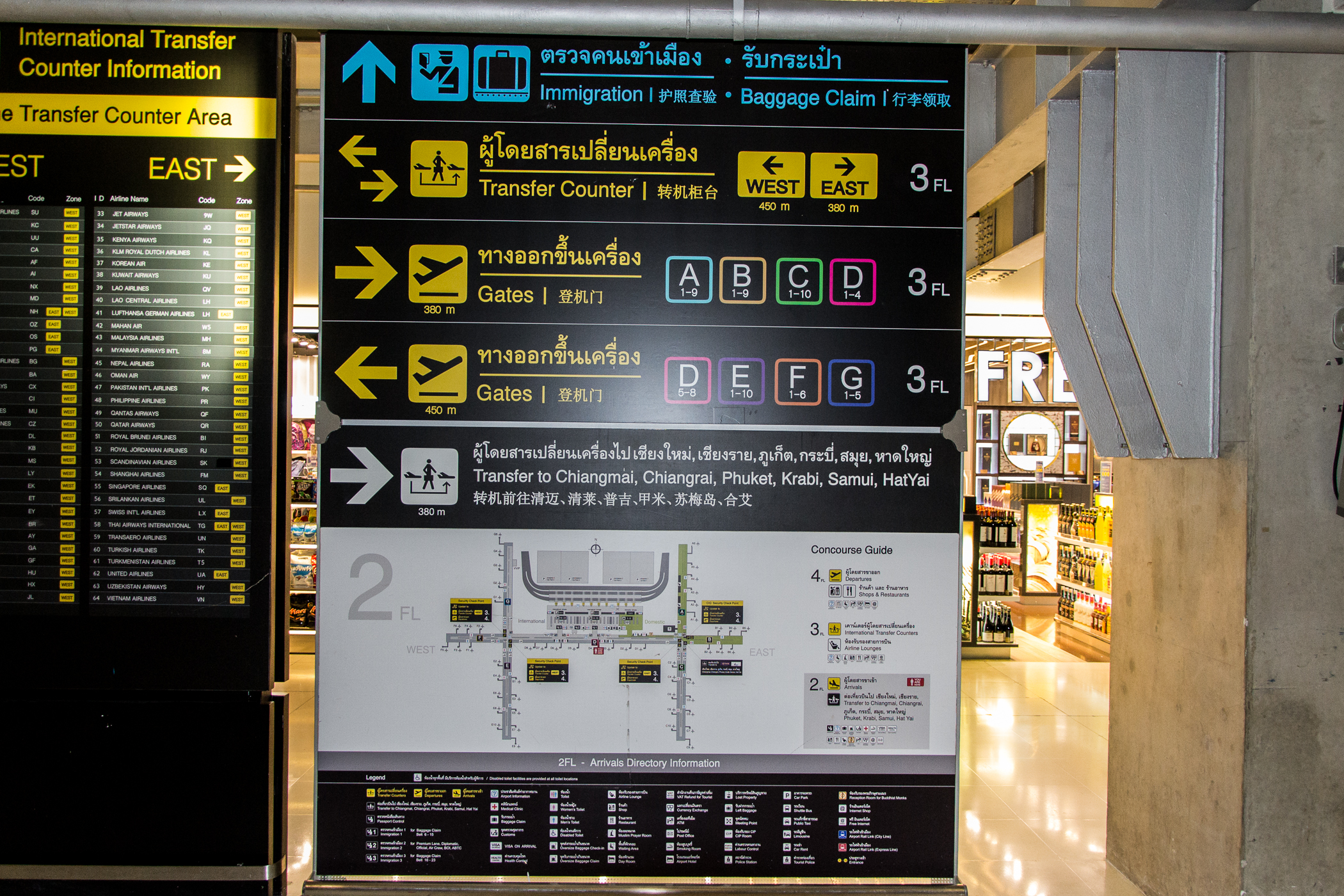 In Bangkok hatten wir nun etwa eine Stunde Aufenthalt bis es weiter gehen sollte. Da wir etwas vor der Zeit landeten, also genug Zeit um den Flug zu bekommen. Wir mussten noch einmal durch eine Sicherheitskontrolle. Hier musste ich eine meiner beiden Powerbanks abgeben. Merkwürdigerweise die kleinere. Angeblich weil nicht zu erkennen ist wieviel Strom diese liefert. Vor dem Gate gab es dann noch einmal eine Taschenkontrolle. Am Gate wurde dann unser Visum für Australien am Computer geprüft. Dann durften wir warten.