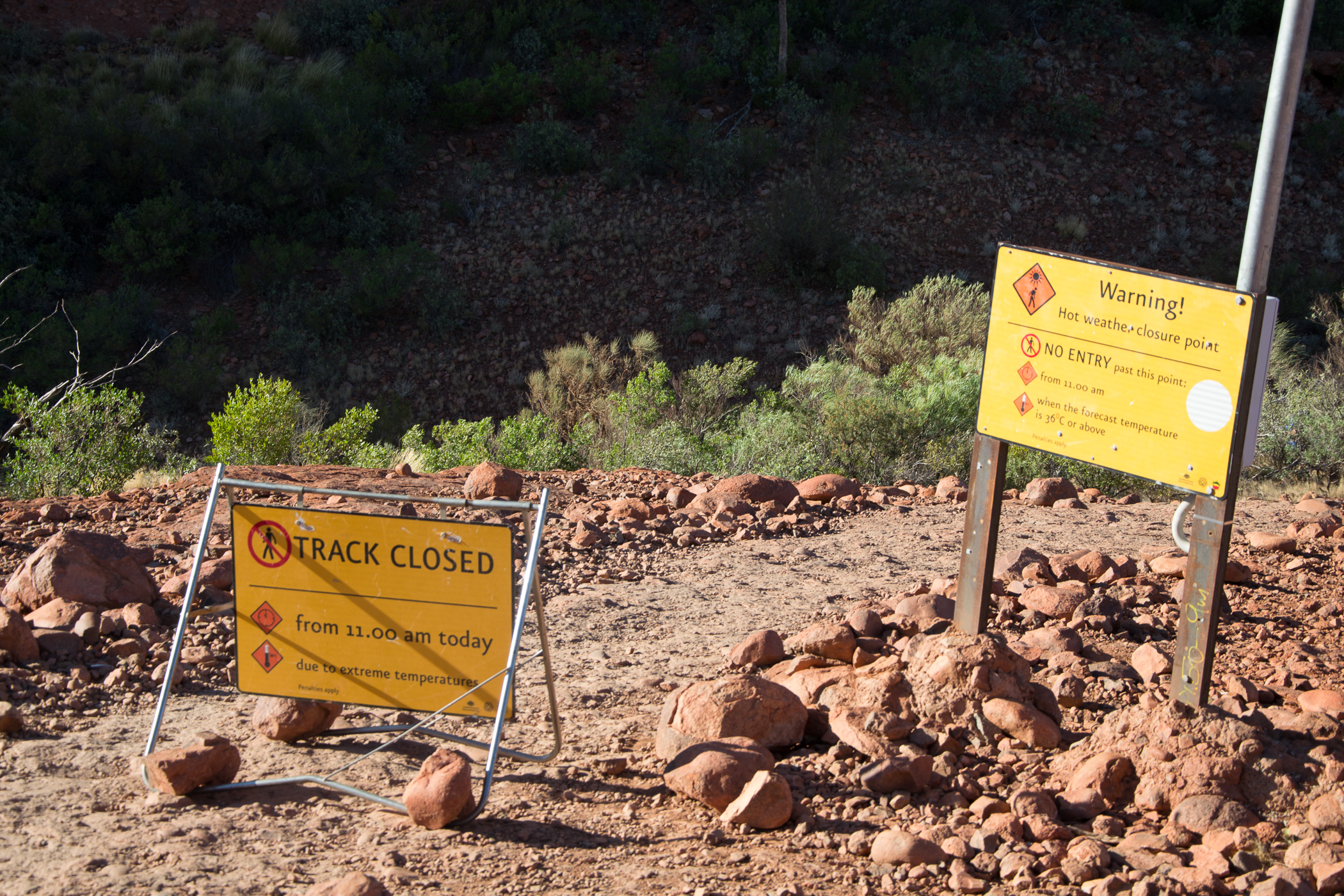 Hier in der Fastwüste fallen die Temperaturen nachts zum Glück um einige Grad. So waren es tagsüber 36 bis 41°C. Doch nachts waren es zum Schlafen angenehme 10 bis 20°C. Auch morgens war es so angenehm und optimal für eine Wanderung. Am Kata Tjuta wanderten wir heute 6 km über Stock und Stein.