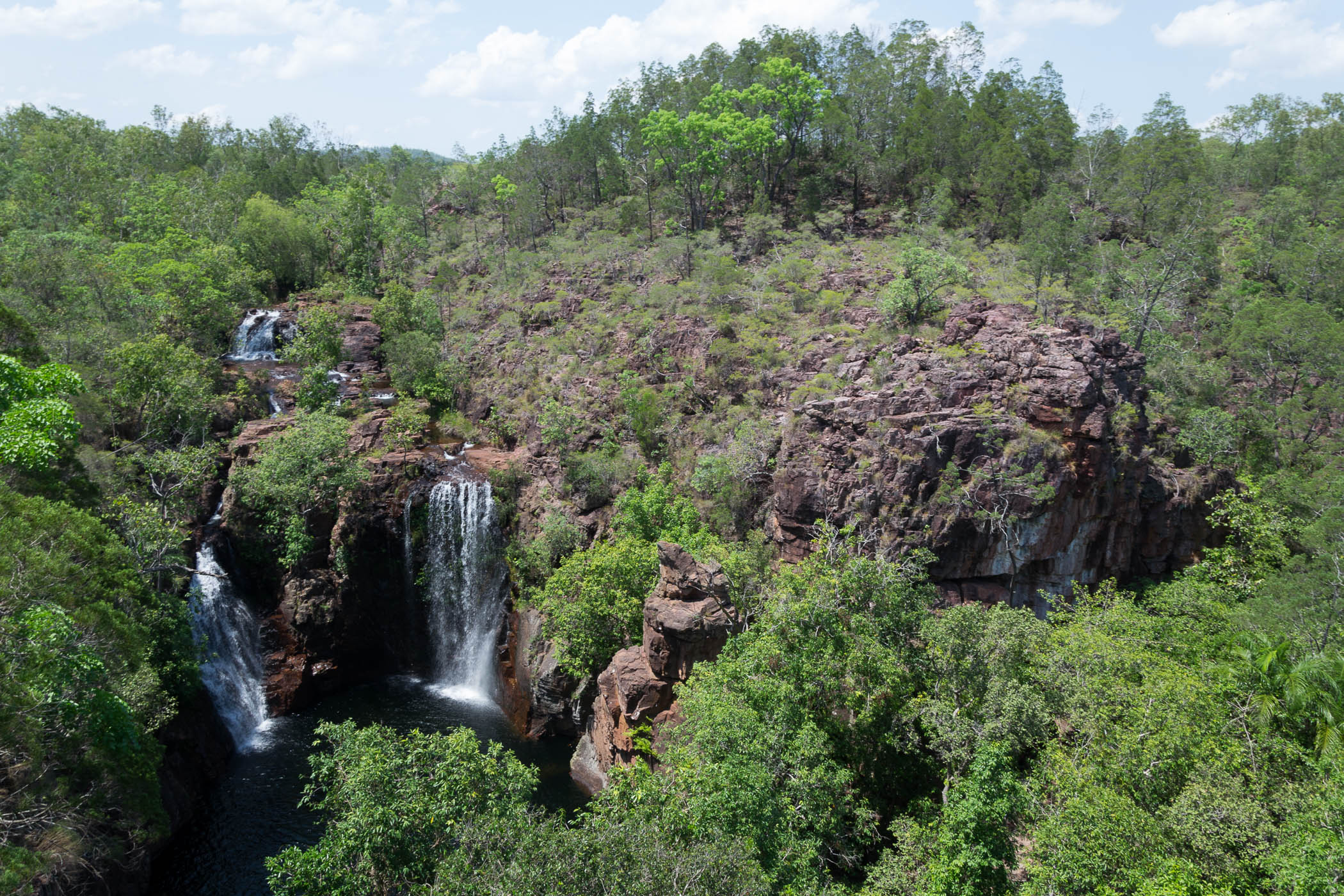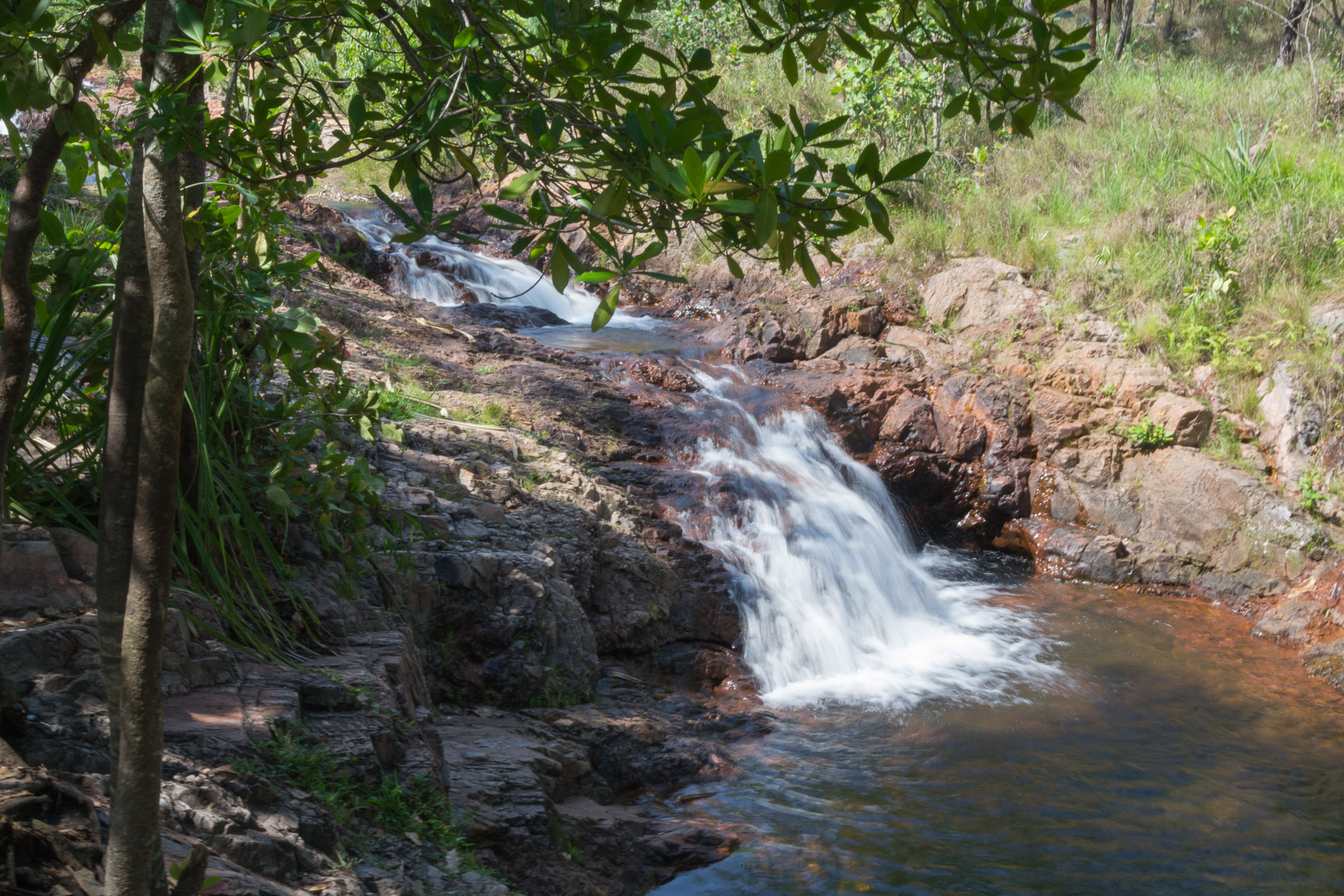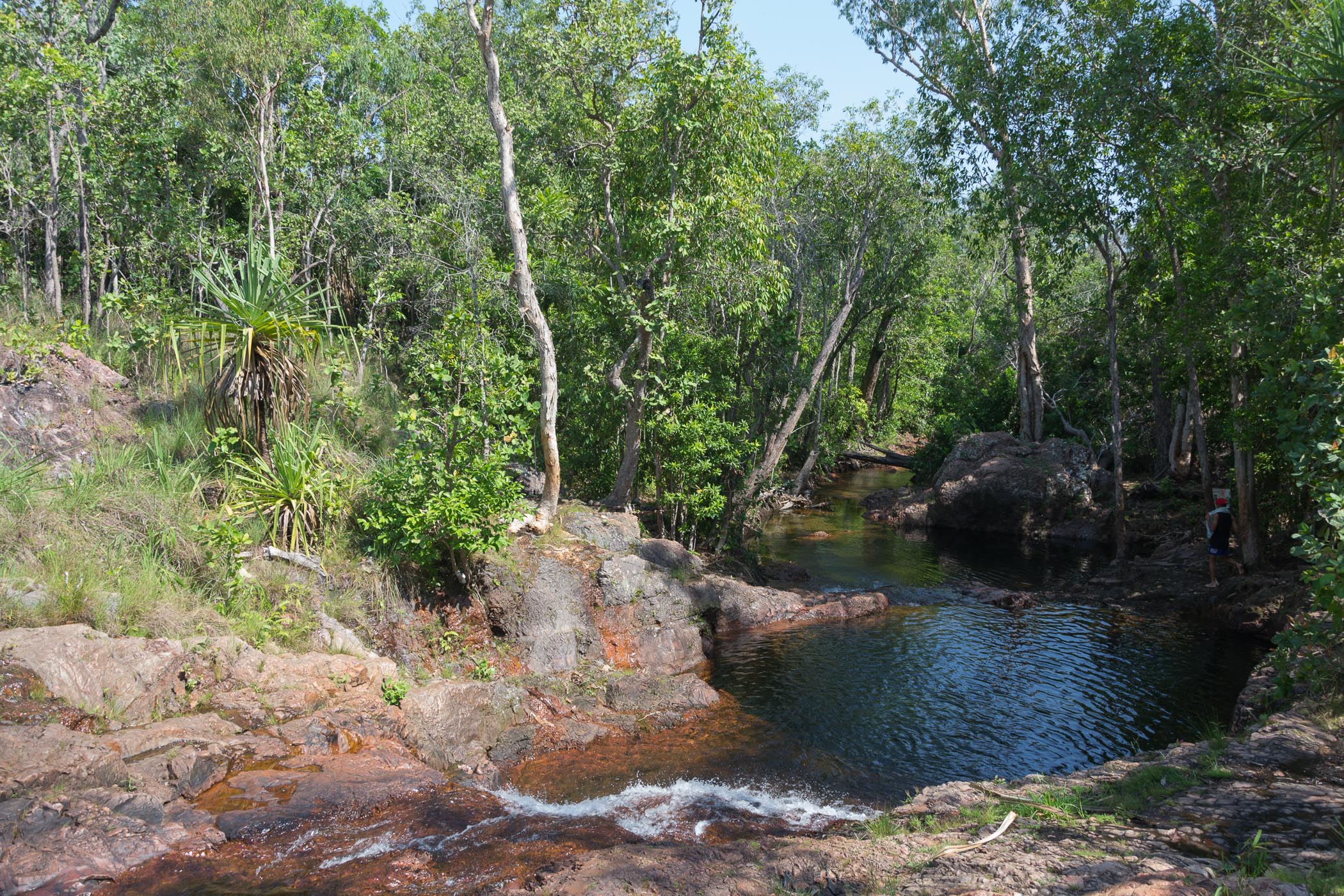 Nach 20 weiteren Minuten im Bus kamen wir zum Buley Rockhole, den ersten natürlichen Pools durch Wasserfälle verbunden. Das Schwimmen darin ist immer wieder schön. Hier waren aber mehr Besucher als im Kakadu Nationalpark. Auch sind diese Pools hier im Litchfield Nationalpark ohne Probleme zu erreichen. Es gibt Geländer und feste Treppen. Das war im Kakadu Nationalpark ganz anders, dort mussten wir richtig klettern und den Weg finden.