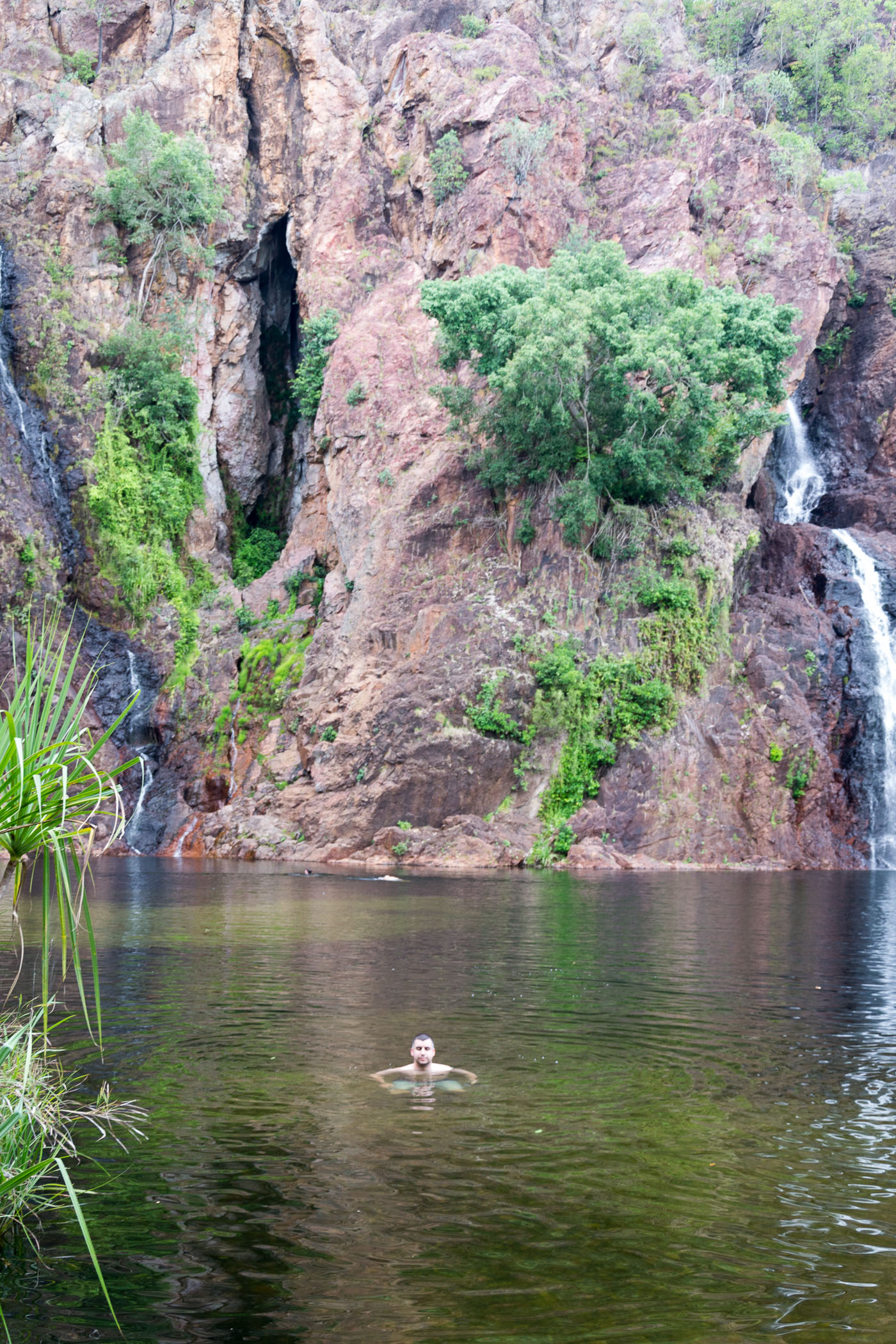 Es erwartet uns noch ein weiterer, letzter Wasserfall im Litchfield Nationalpark. Leider auch der letzte auf dieser Tour. Doch auch Wangi Falls hatte eine tolle Überraschung für uns. Das Wasser war glasklar und meistens sehr flach, sodass ich stehen konnte. Es dauerte aber etwas von einem Ende bis zum anderen zu schwimmen. Dort wartete dann aber noch ein kleiner Pool auf uns. Dieser war ganz klein aber sehr tief. Dafür musste ich etwas hochklettern. Aber wirklich sehr schön von hier die Natur zu besichtigen.