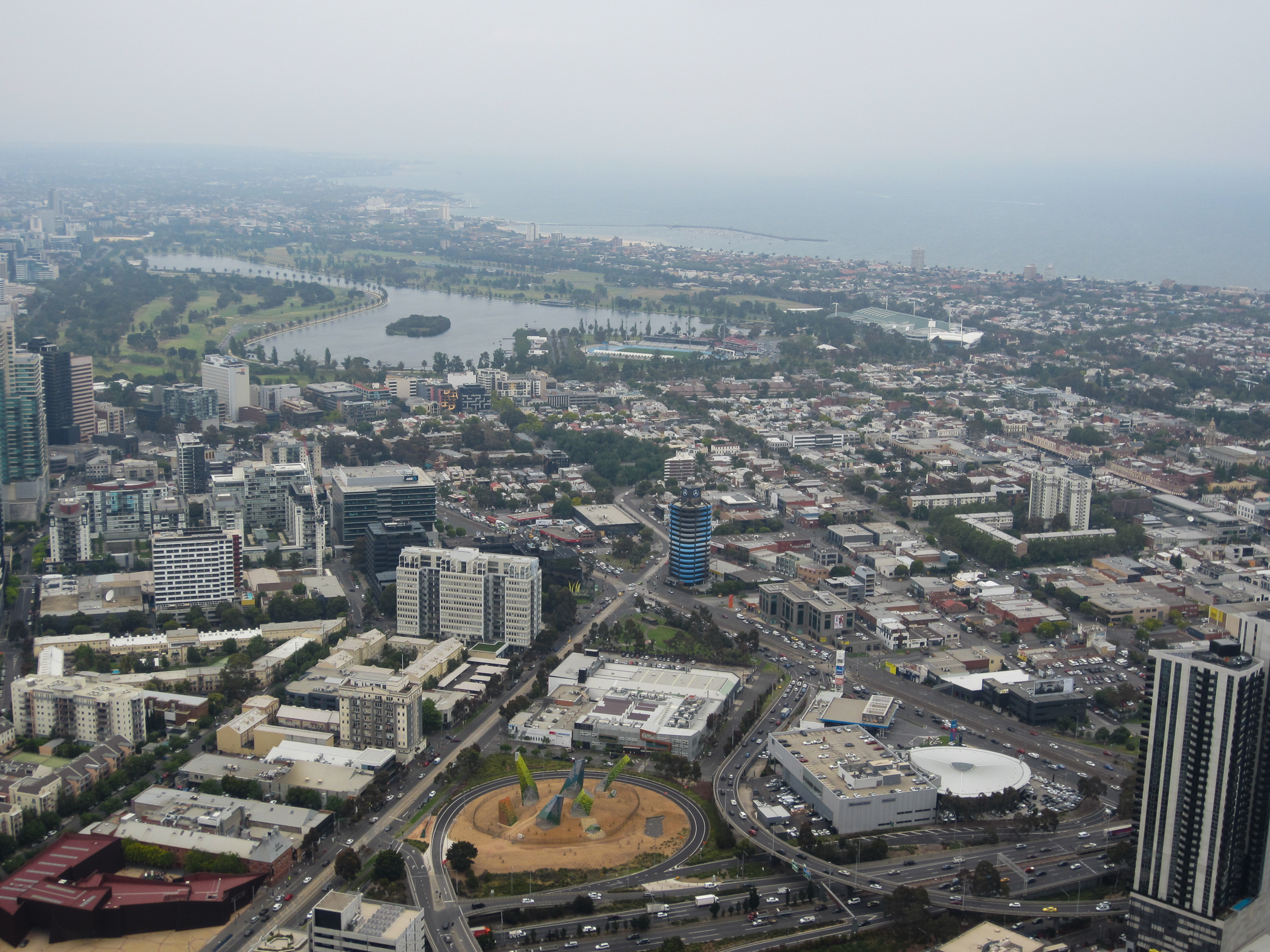 Ja vieles in Melbourne ist das größte, erste oder beste auf der Südhalbkugel, dies hörten wir hier doch immer wieder, „in the southern hemisphere“. Zurück zum Eureka Tower. Obwohl es wolkig war, hatten wir eine super Sicht über Melbourne und entdeckten vieles. Wie wir schon vorher im Internet gelesen hatten, spiegelten die Scheiben und es war etwas schwierig mit dem Fotografieren. Die Aussicht lohnt sich aber auf jeden Fall. Auch die offene, windige Terrasse war schön. Für den Weg über Glasscheiben unter uns hätten wir extra bezahlen müssen, so verzichteten wir darauf.