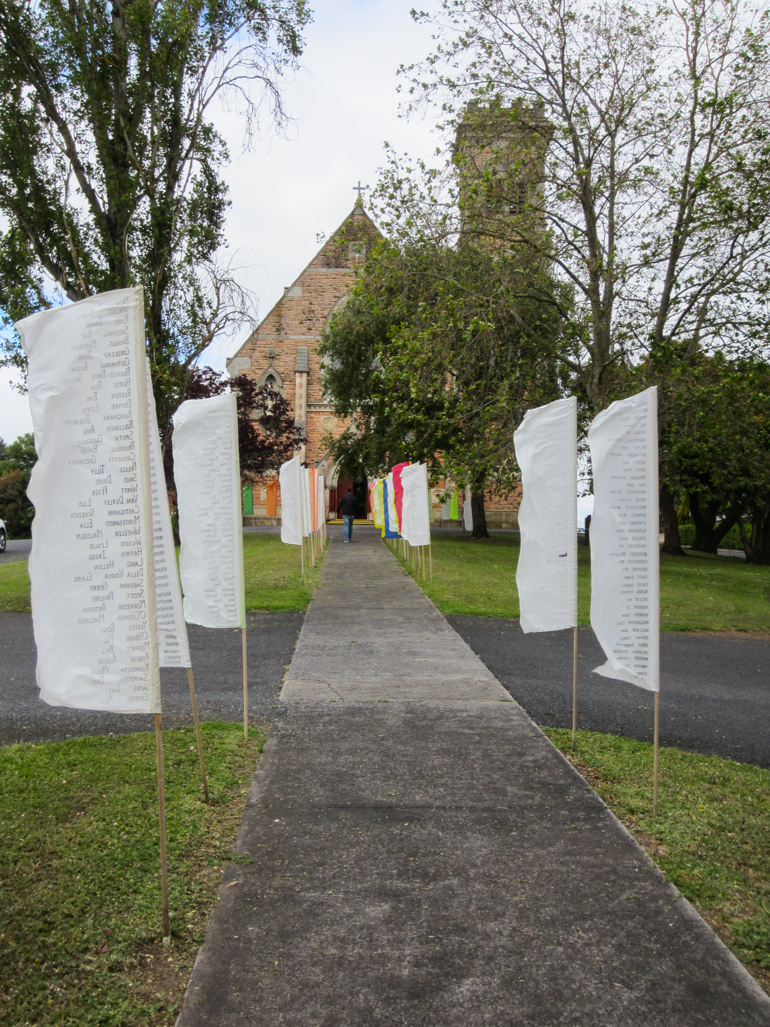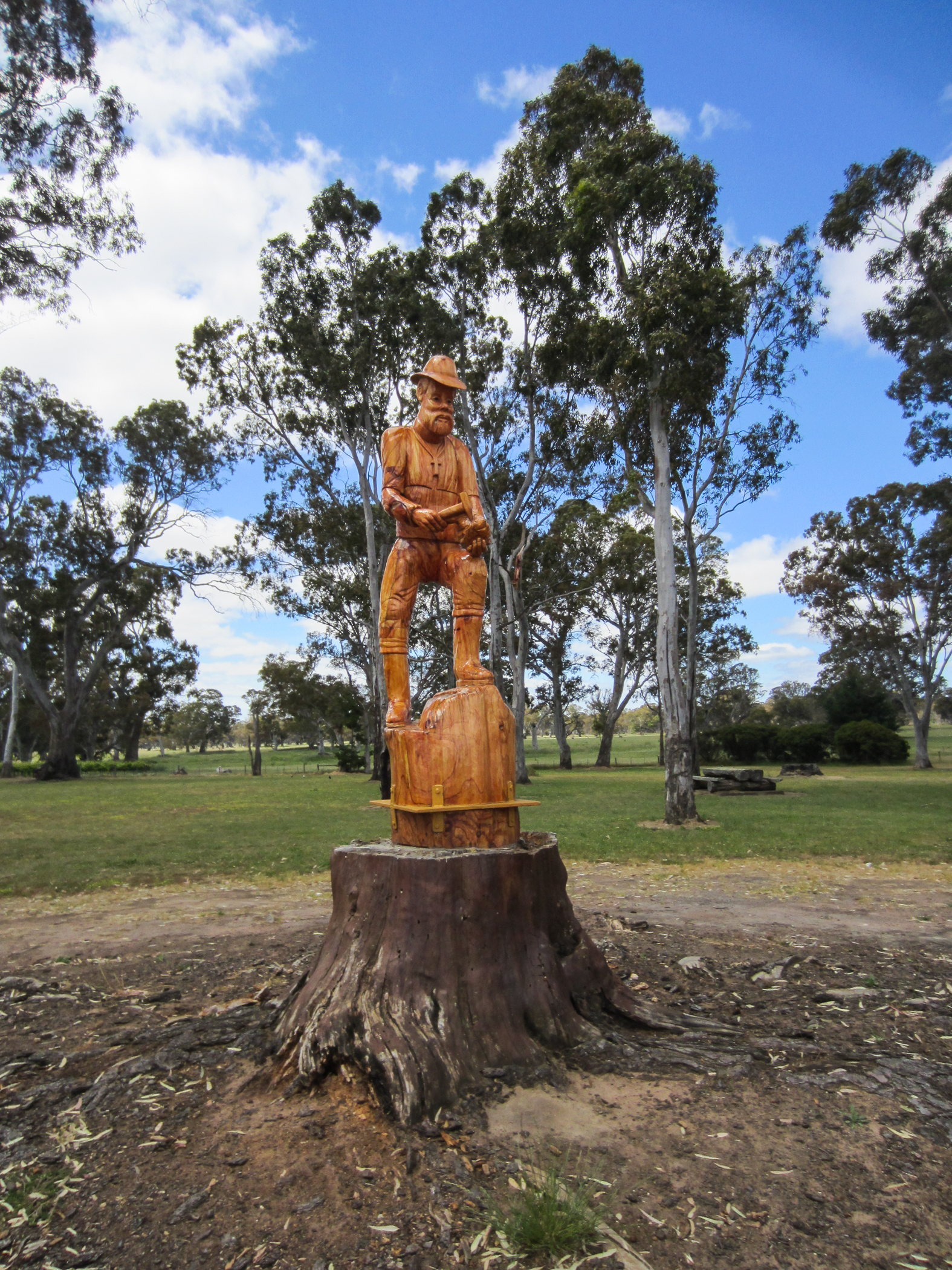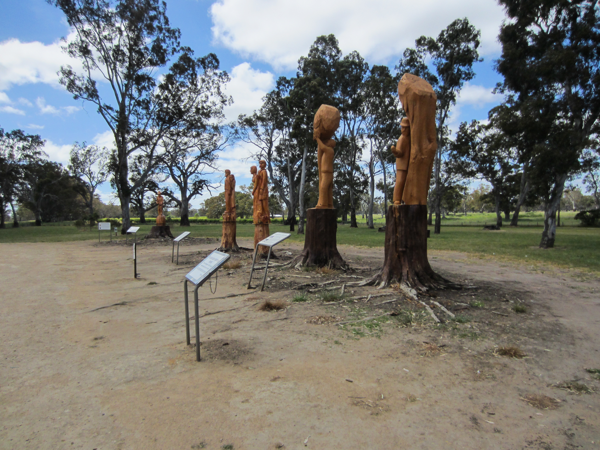 Unterwegs stoppten wir bei Woodlands Form und schauten uns die christlichen Schnitzereien an. Die Figuren hier sind größer als ein Mensch. Etwas Zeit für einen Snack musste auch sein, also machten wir hier etwas Pause und der Schinken wurde verzehrt. Weiter ging die Fahrt nach Mount Gambier. So heißt der Ort und sicher auch ein Berg. Im Ort entdeckten wir gleich zwei schöne Kirchen. Doch wollten wir ja zum Blue Lake.