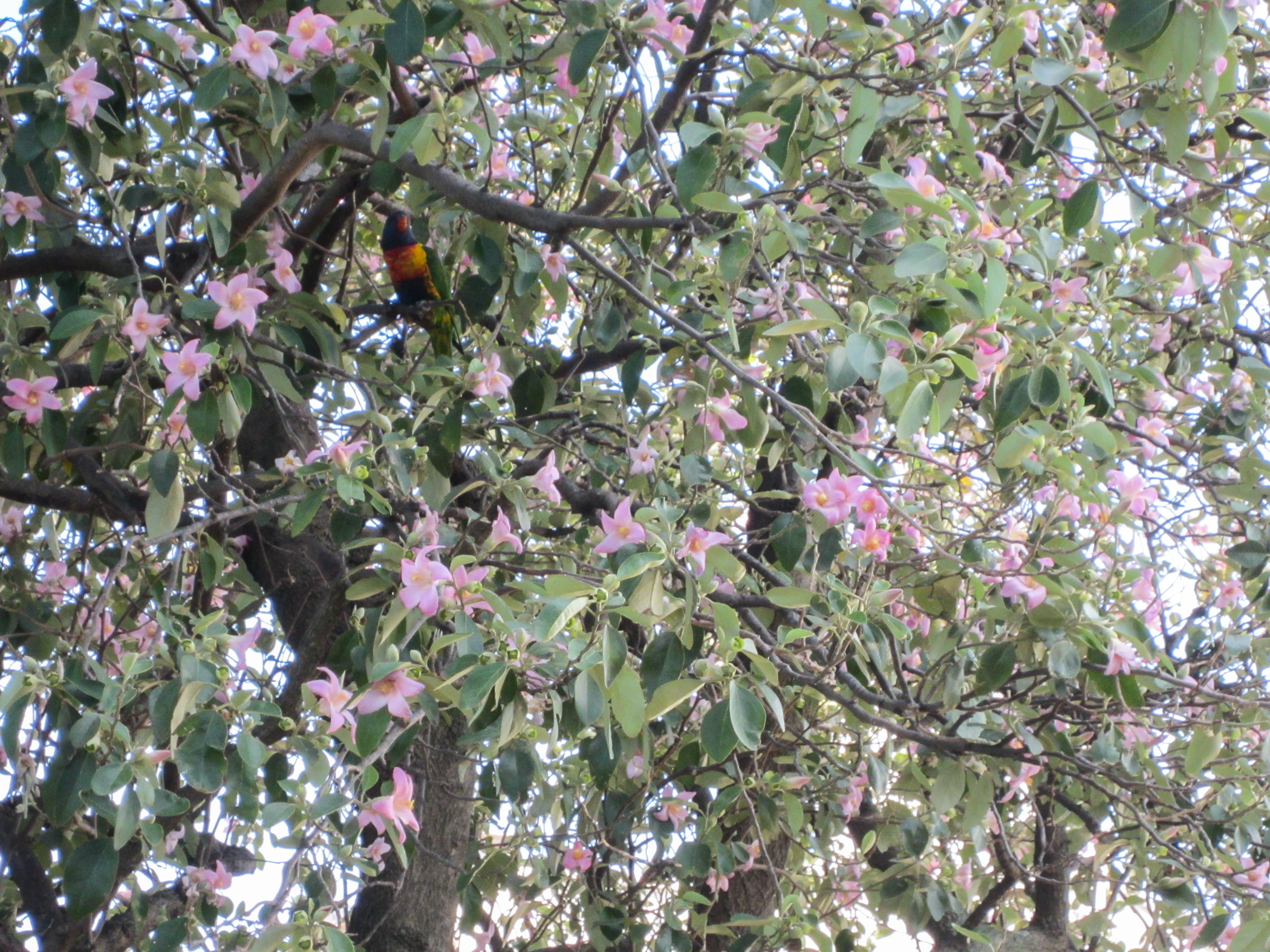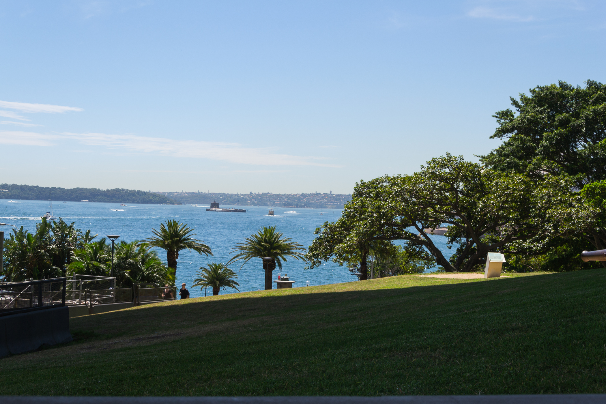 Bis 12:30 Uhr war aber noch einiges an Zeit. So erkundeten wir Circular Quay und Barangaroo Reserve zu Fuß. Schon am Morgen war es gut heiß, doch die Aussichten auf Sydney machten das wieder wett. Unterwegs sahen wir auch ein paar Papageien im Baum die Blüten essen. Die Sicht auf die Sydney Oper war heute durch das riesige Kreuzfahrtschiff Carnival Spirit etwas verdeckt.