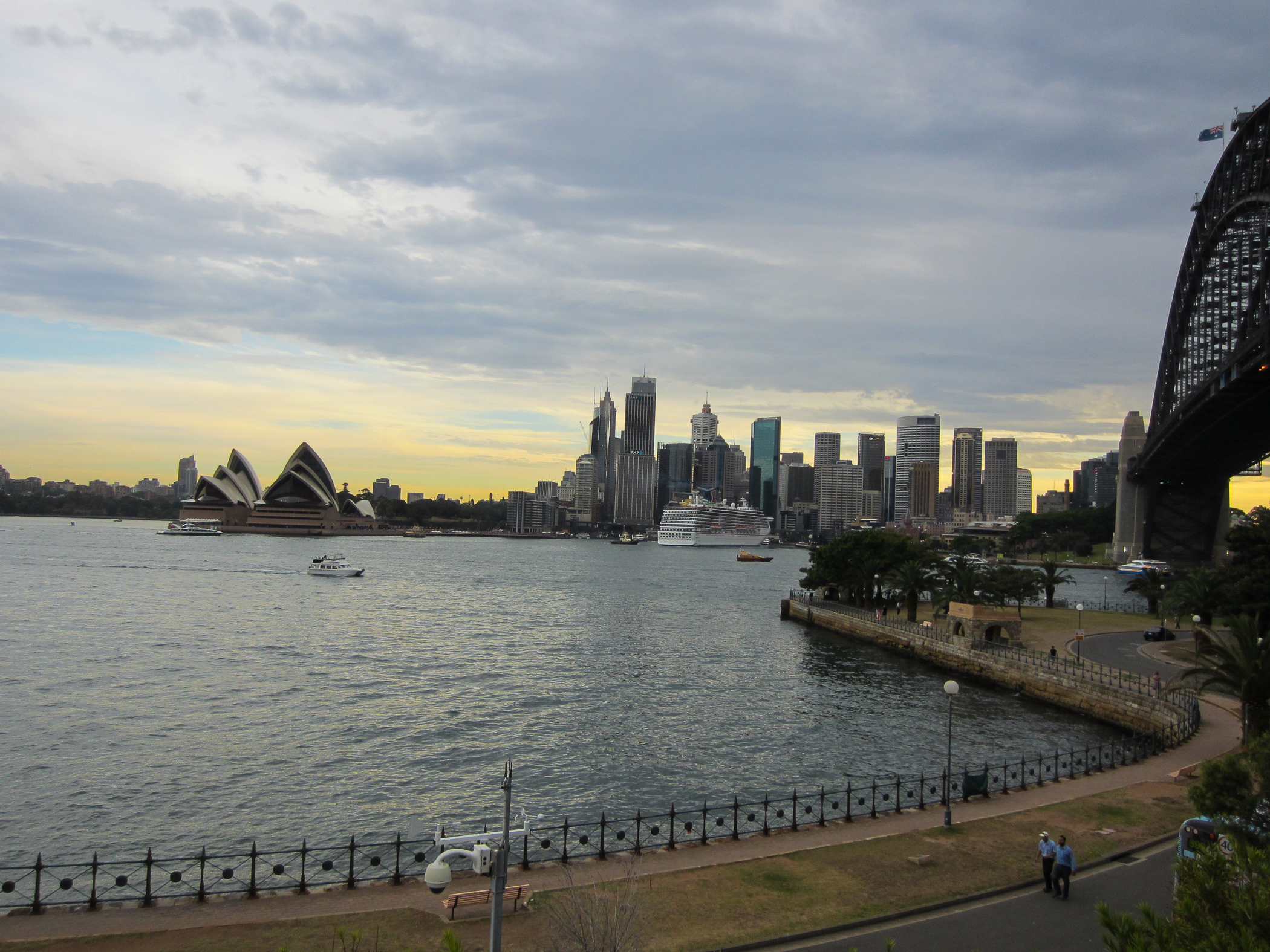 Mit dem Zug fuhren wir dann eine Station, stiegen um und fuhren wieder eine Station. Dieses Mal ging es mit dem Zug über die Harbour Bridge. Unglaublich wie hoch diese Brücke ist. Auf der anderen Seite angekommen, ging es dann zu Fuß wieder nach unten Richtung Ufer. Gerade als wir ankamen legte die Carnival Spirit ab. Wir sahen also das Sydney Opera Haus hinter dem Kreuzfahrtschiff verschwinden und dann wieder auftauchen.