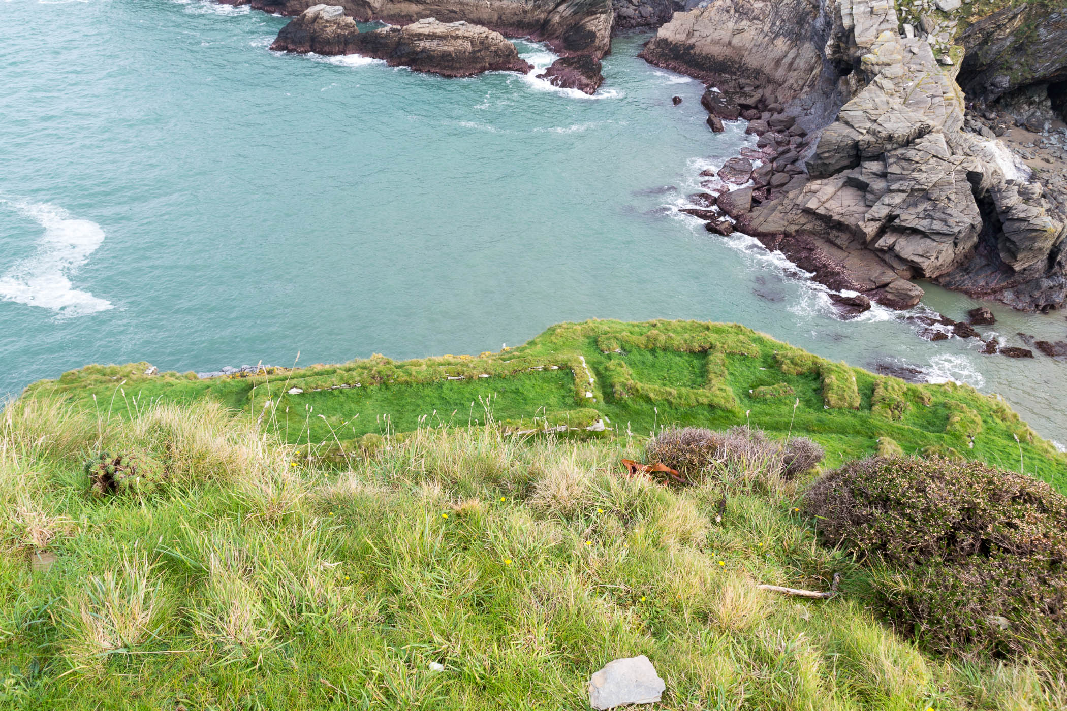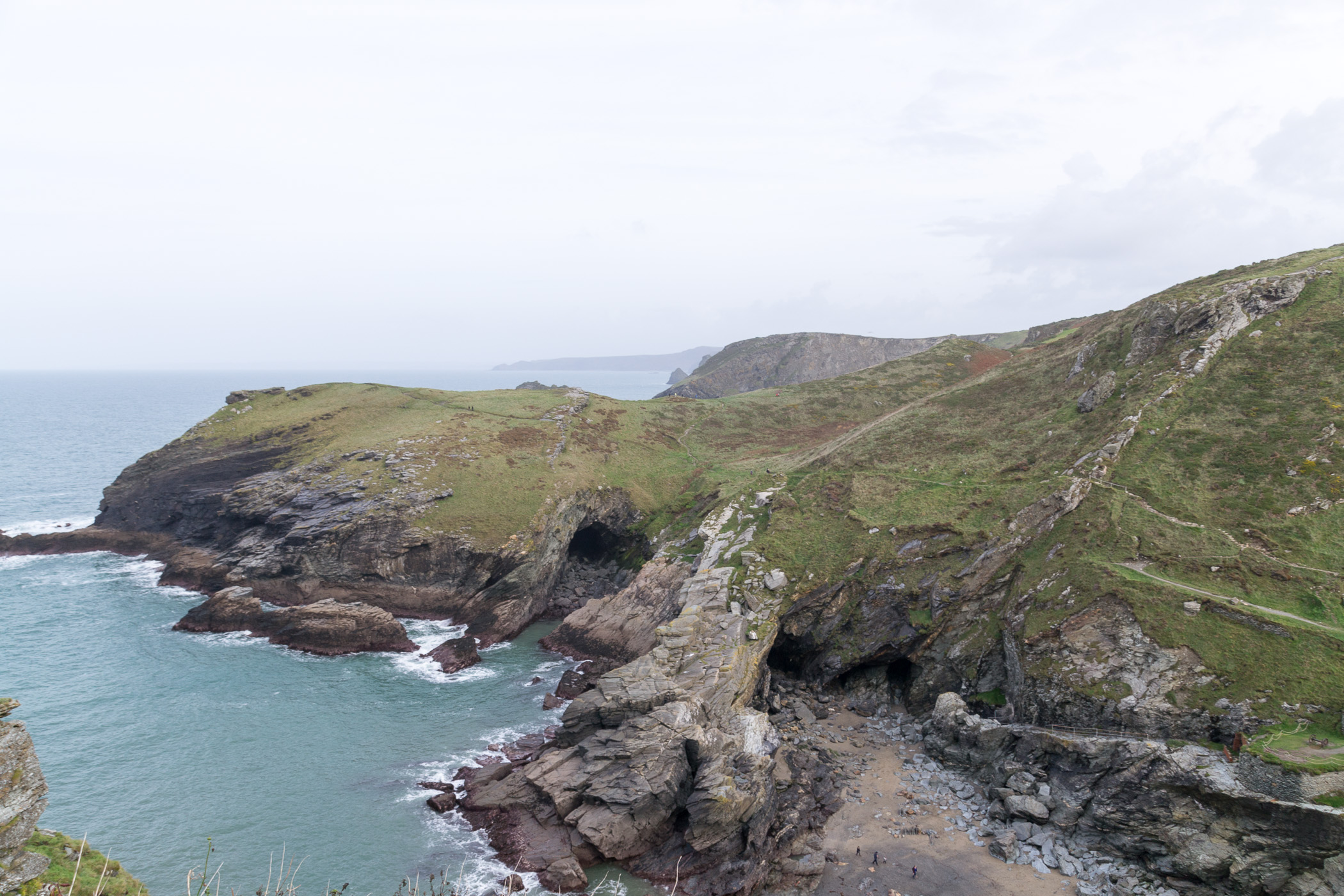 - Oben auf der Burg Tintagel mit Blick in die Bucht