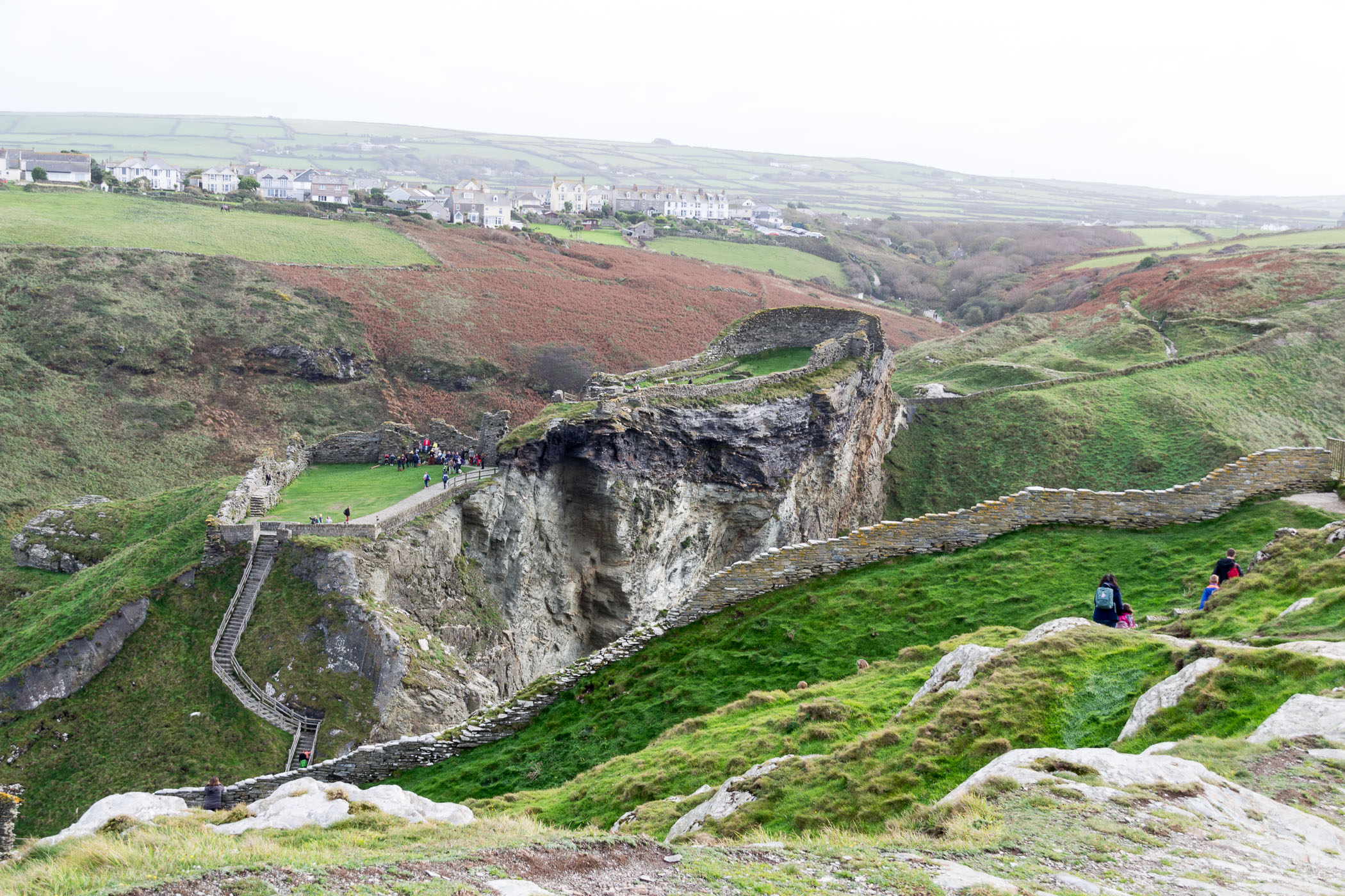 Zuerst fuhren wir von unserem Ferienhaus nach Norden zum Tintagel Castle. Diese Burg liegt auf einer Halbinsel an der Westküste Cornwalls. Ganz in der Nähe ist das Dorf Tintagel. Die Burg Tintagel ist stark verwoben mit den Sagen um König Arthur. Er soll hier gezeugt worden sein. Erst in der Zeit von 1990-1999 hat man bei Ausgrabungen die Burg und Gebäudestrukturen entdeckt. Vorher gingen die Forscher von einer frühchristlichen keltischen Klosteranlage aus.