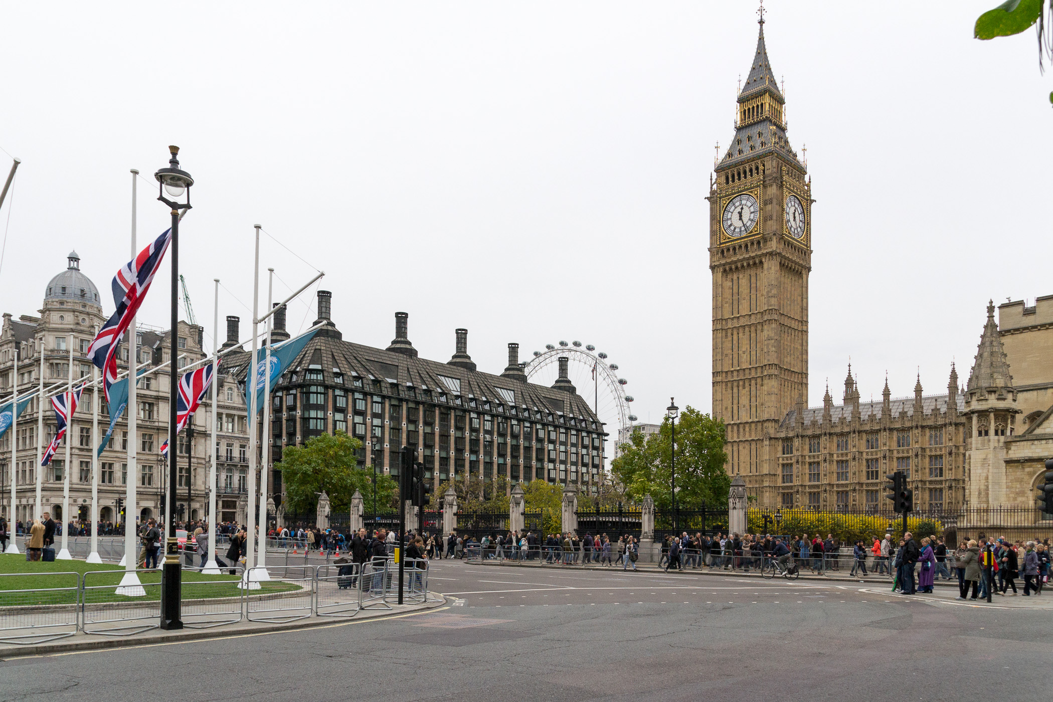 - Fahnen vor dem Londoner Parlament