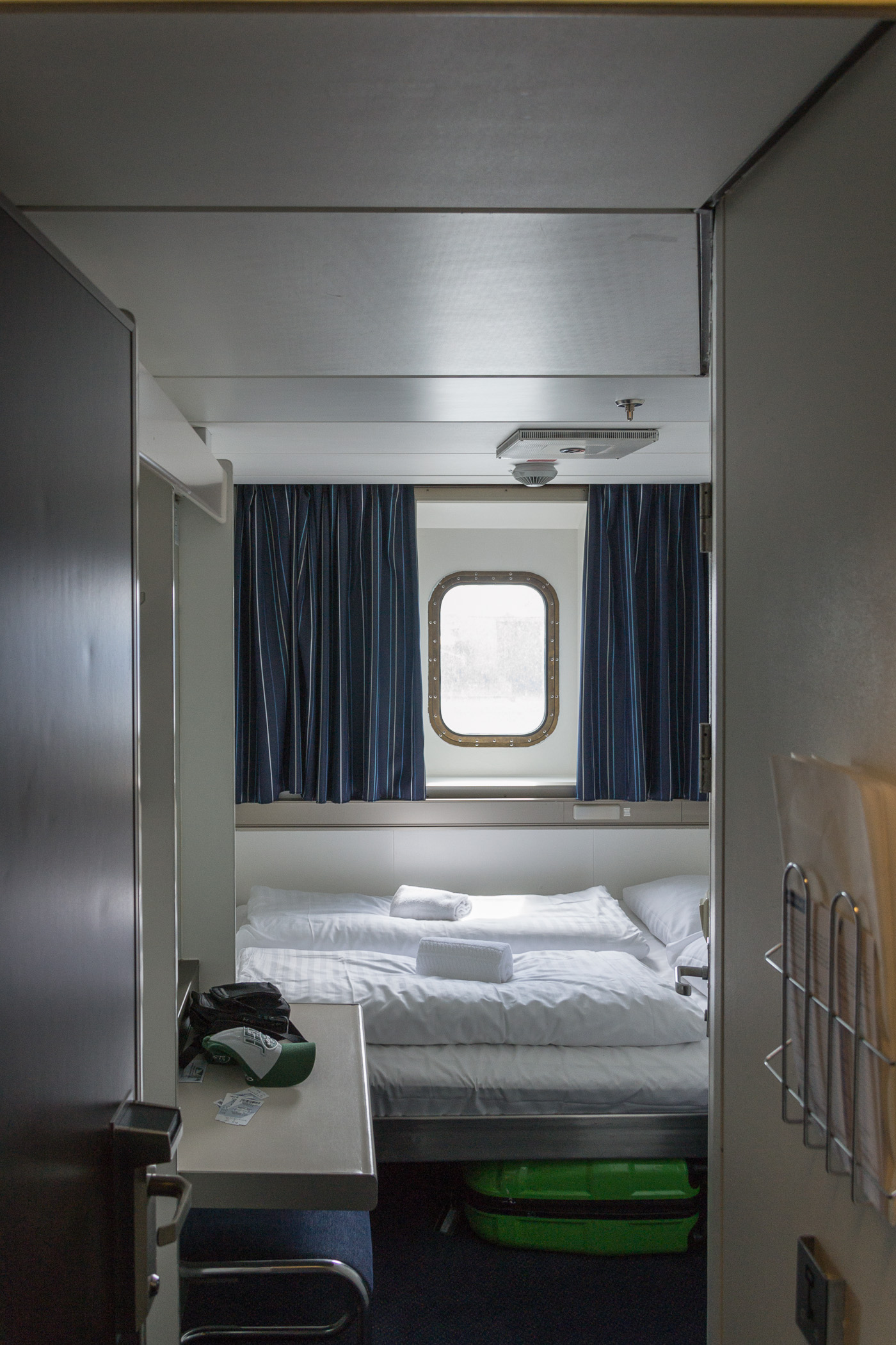 Wir entschieden uns auf der DFDS Seaways Fußballreise für eine Außenkabine. Bei einer Innenkabine fühlen wir uns zu sehr eingeengt. Für diese eine Nacht musste es auch nichts Besonderes sein. So hatten wir auf der Hinfahrt die Kabine 7116, eine Kabine im vorderen Drittel des Schiffs mit einem Doppelbett. Es war zwar etwas eng, aber ausreichend groß für diese Überfahrt. Die Commodore Kabinen erinnern mehr an Kreuzfahrtkabinen, doch waren uns diese zu teuer.