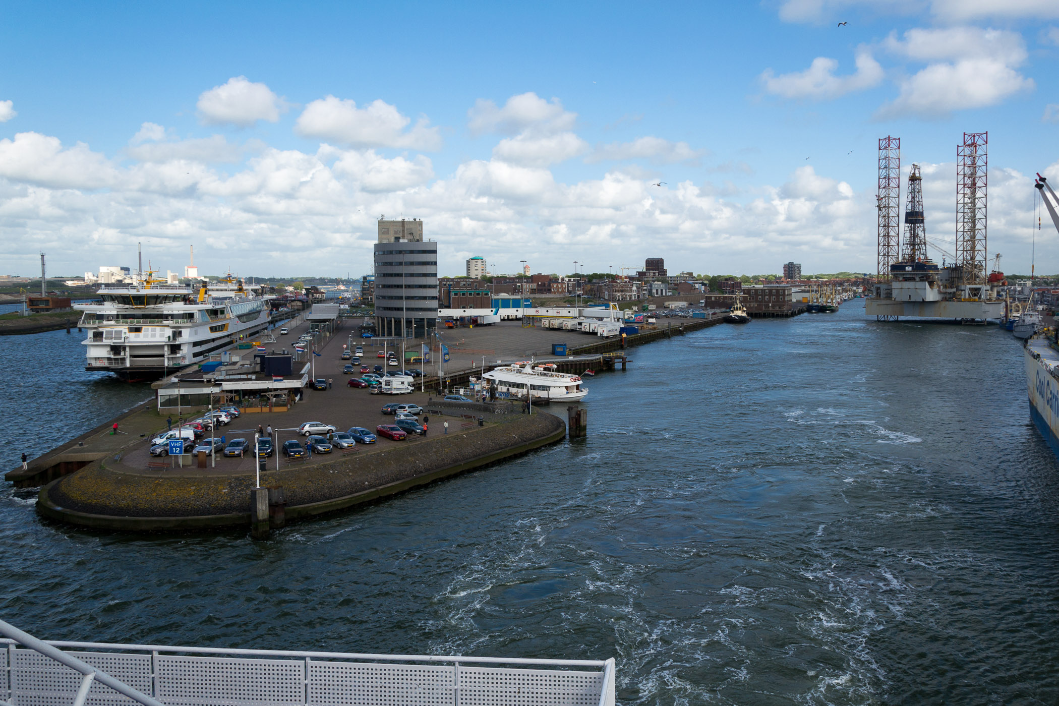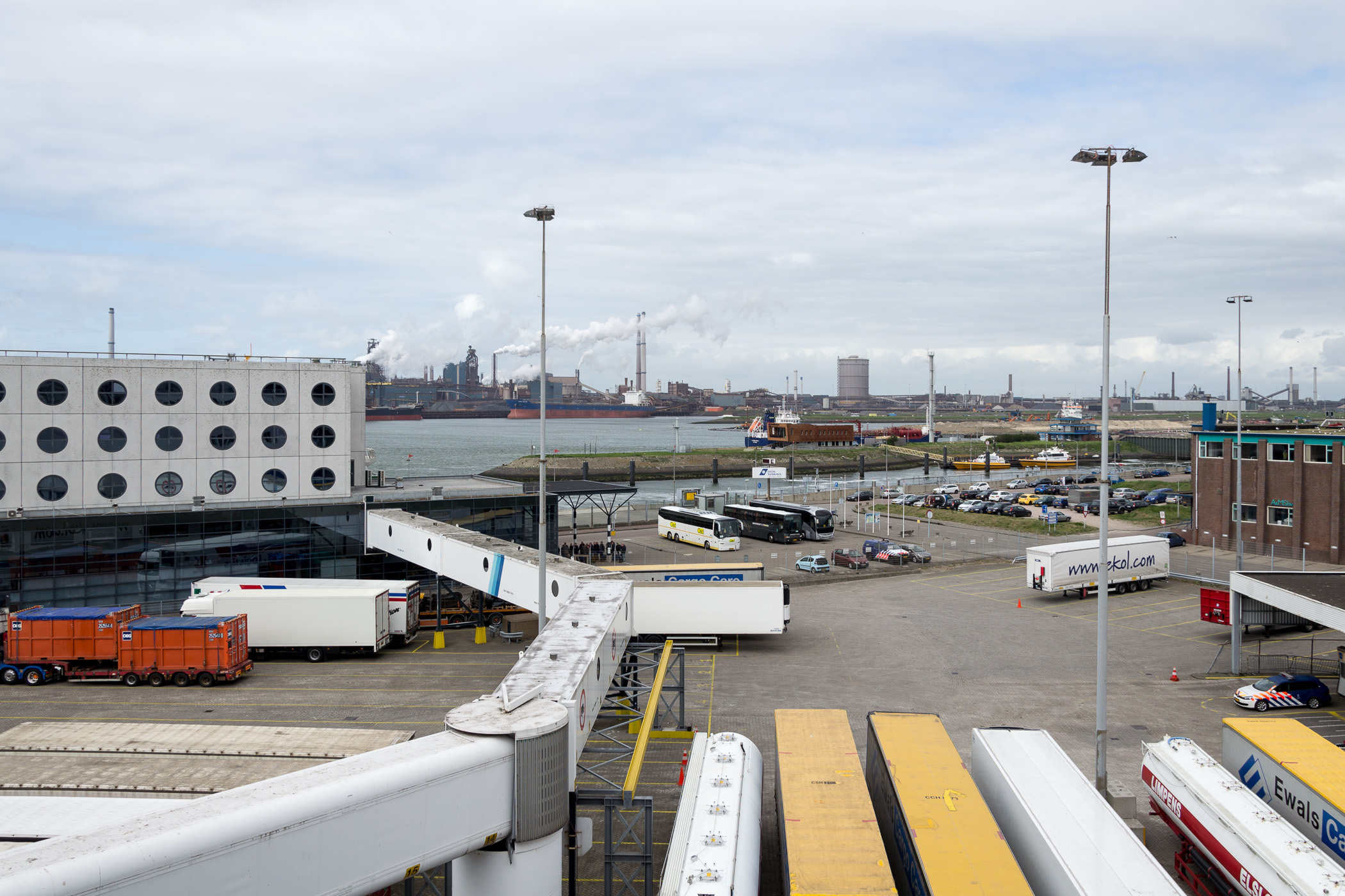 - Blick auf den Parkplatz der DFDS Seaways in Ijmuiden