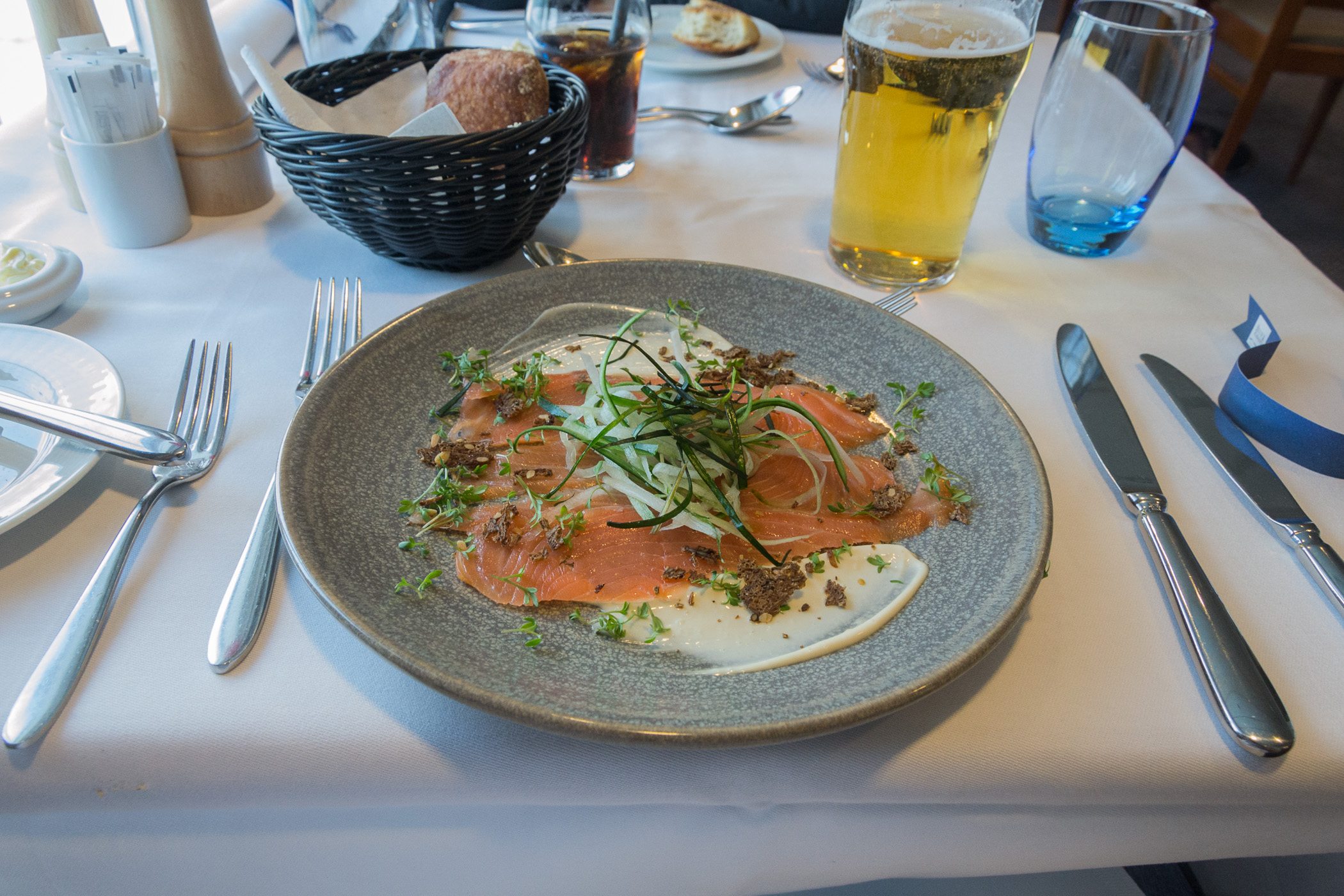 - leckerer Lachs im Blue Riband Restaurant auf der Princess Seaways