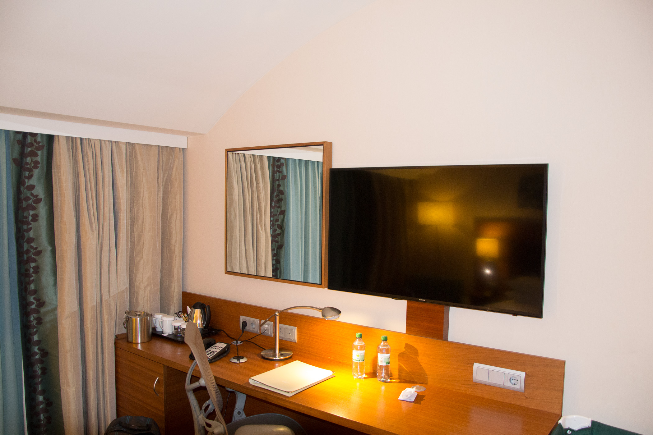 Leider hatten wir nur eine sehr kurze Nacht ohne Frühstück im Hotel, um 4:15 Uhr mussten wir schon auschecken um unseren Flieger zu bekommen. Doch das Zimmer konnten wir nutzen. Es war klein und der Kinderwagen musste im Bad parken. Doch die Betten waren bequem und auch das Babyreisebett war gut. Der Kleine hat gut geschlafen, bis wir ihn wecken mussten. Es gab einen TV, einen Wasserkocher, einen Schreibtisch und einen Sessel. Für eine Nacht vor oder nach dem Flug genau die richtige Wahl. Wir würden wieder dort übernachten, dann aber ggf. auch anrufen und nach einer Rate mit parken Fragen. Die Wege zum Flughafen sind kurz und trotzdem war das Zimmer im Hilton Garden Inn Frankfurt Flughafen sehr ruhig.