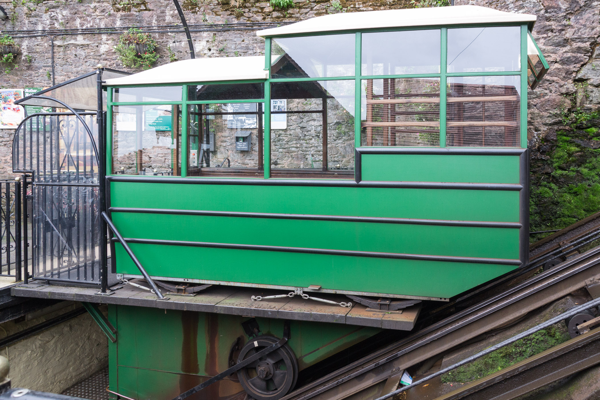 - Die Lynton & Lynmouth Cliff Railway auf dem Weg nach oben