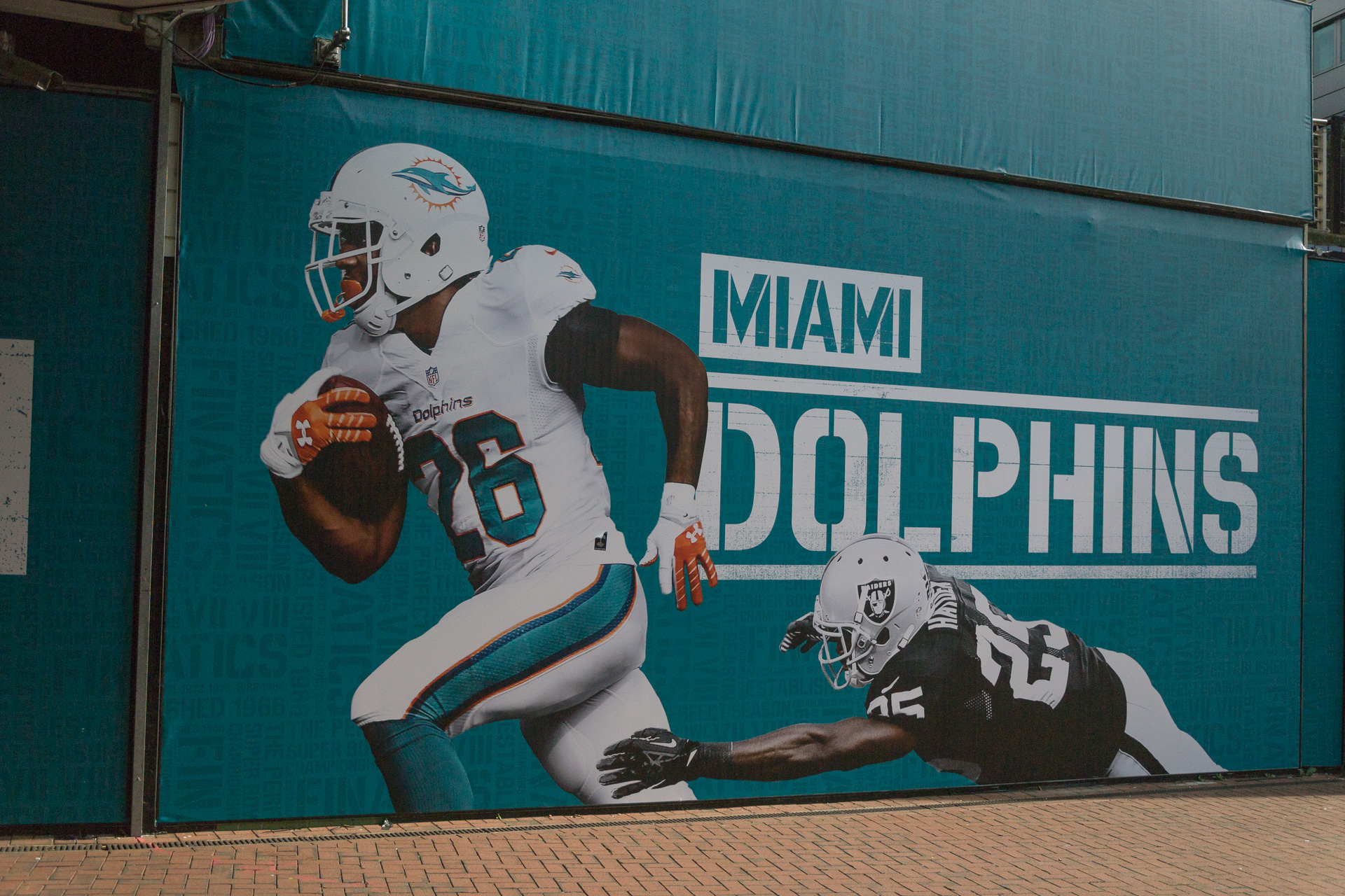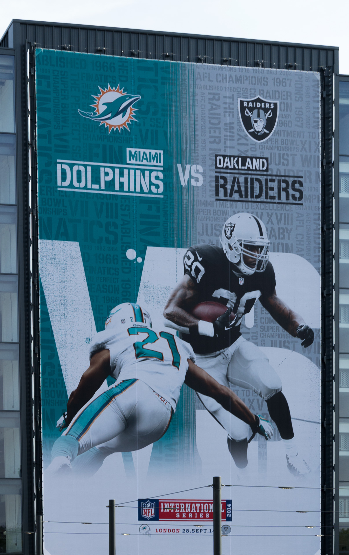 - Riesenplakat zum Spiel Miami Dolphins vs. Oakland Raiders