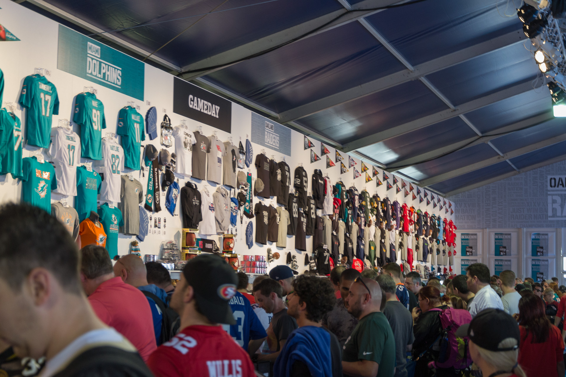 - Merchandise Shop der NFL im Zelt vor dem Wembley Stadion