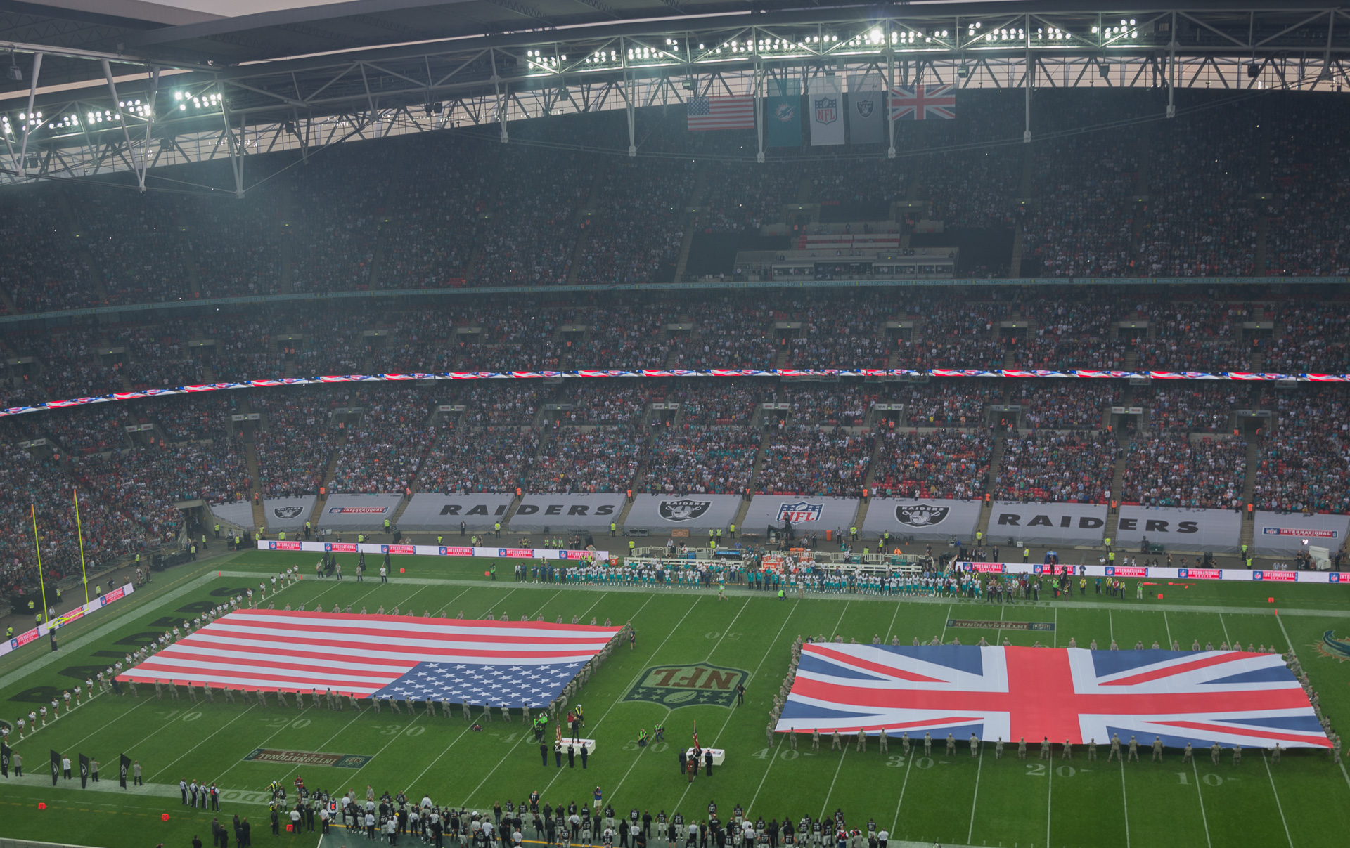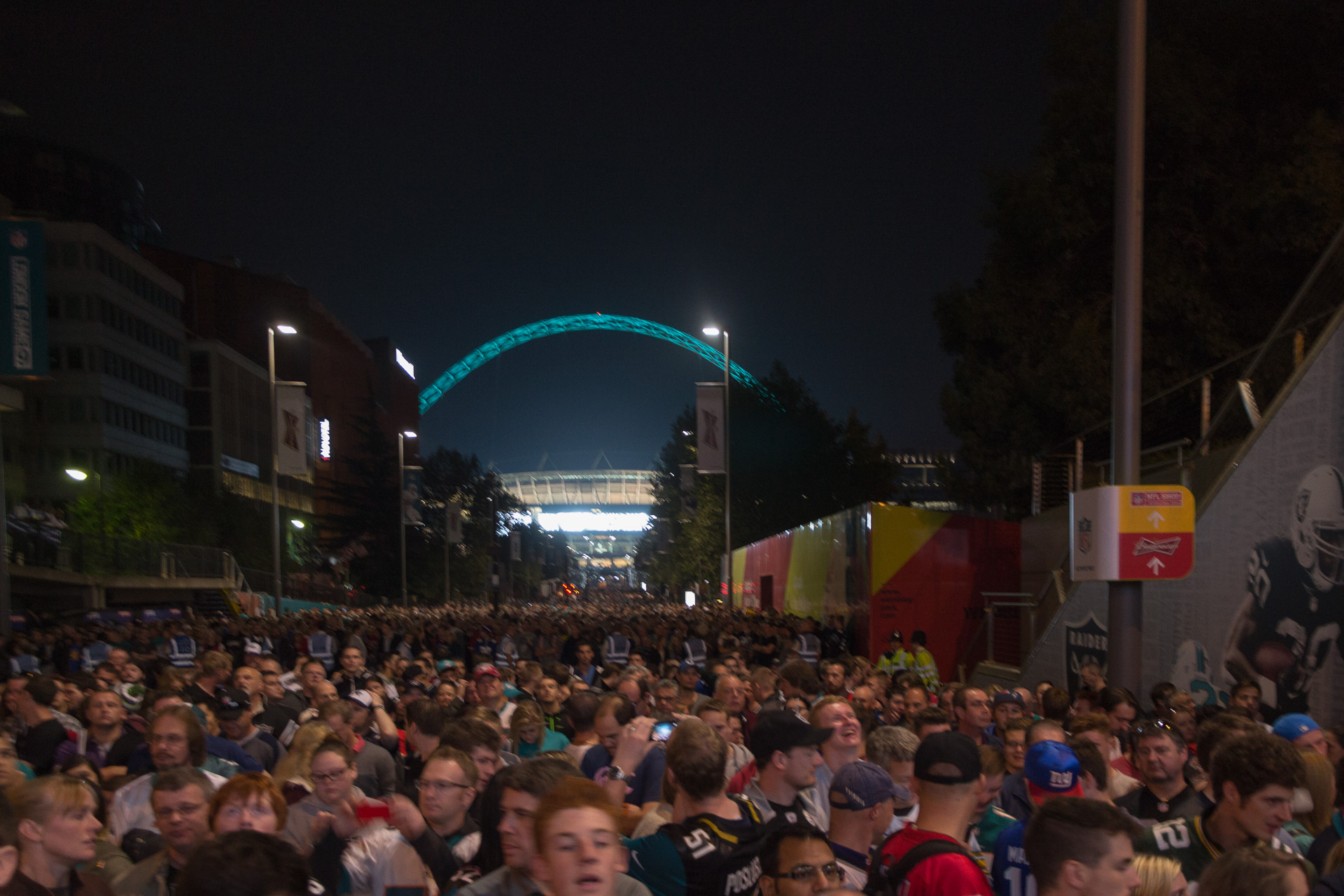 - Die Massen strömen zum American Football nach London ins Wembley Stadion