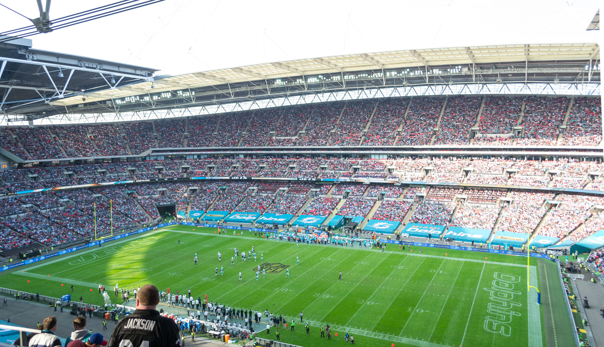 Am letzten Sonntag war es wieder soweit. Die NFL gastierte zum 12. Spiel in London. Die Miami Dolphins erwarteten als Heimteam die New York Jets. Letztes Jahr waren wir schon beim NFL Spiel Oakland Raiders gegen Miami Dolphins. So waren wir dieses Jahr schon auf das NFL Spiel in London gespannt.