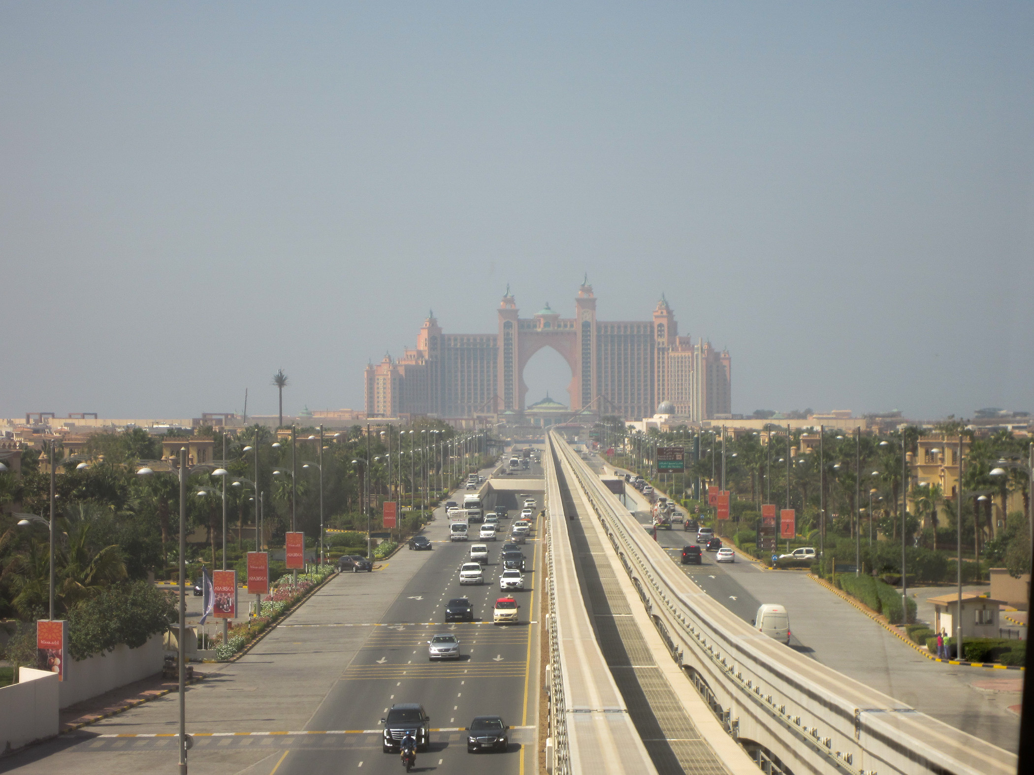 Nach dem bisschen Sport am Morgen fuhren wir mit dem Taxi bis zur Monorail Jumeirah an den Gateways Tours. Von hier konnten wir schön mit der führerlosen Einschienenbahn auf die Palmen Insel Dubais fahren. Die Fahrt kostet zwar 50 AED hin und zurück, da die Bahn aber auf Stelzen steht ist die Aussicht ganz gut. Leider ist die Bahn nicht richtig an das andere Netz angebunden und kostet auch extra. Weiterhin gibt es nur zwei Stationen, an welchen gehalten wird.