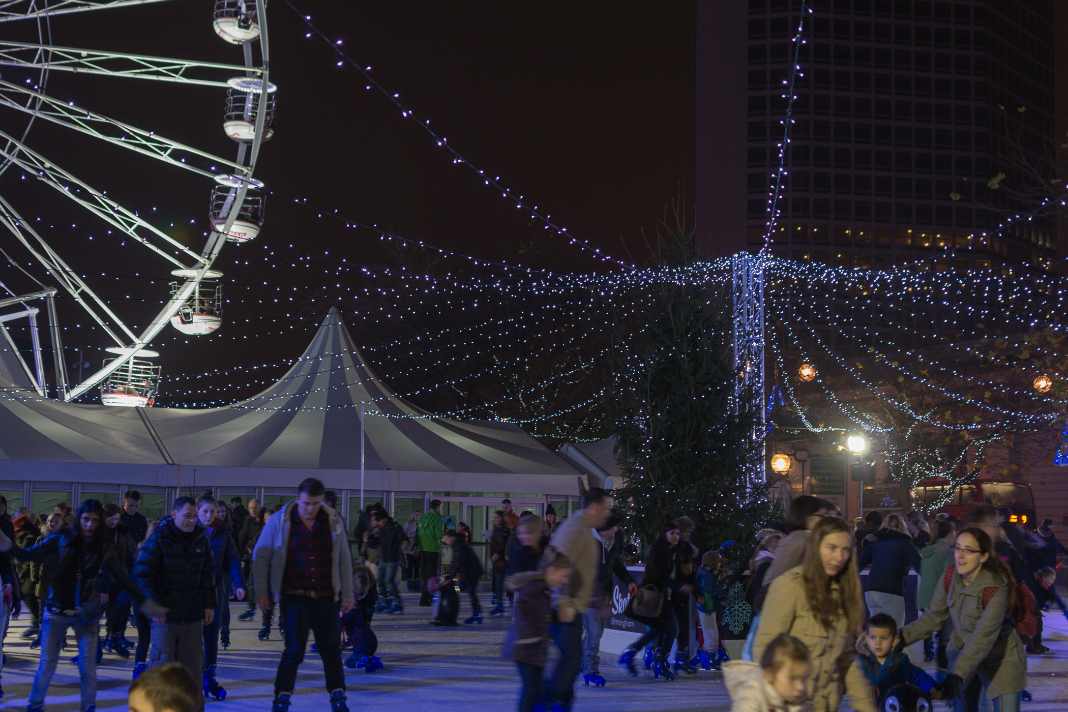 - Schlittschulaufbahn beim Weihnachtsmarkt Birmingham bei Nacht