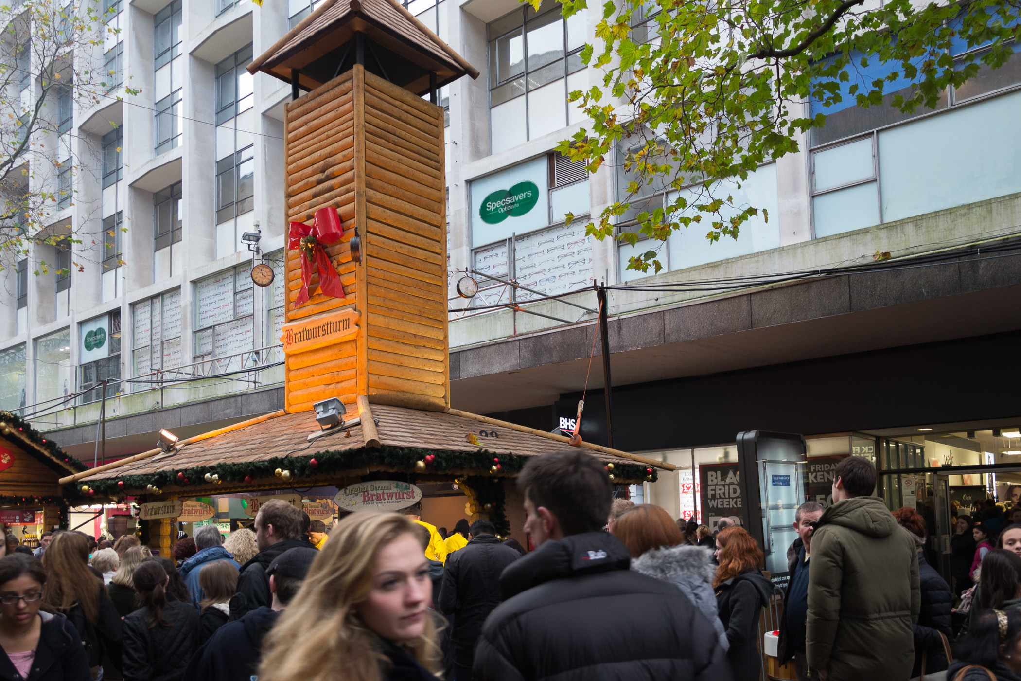 - Bratwurst Turm auf dem Weihnachtsmarkt Birmingham