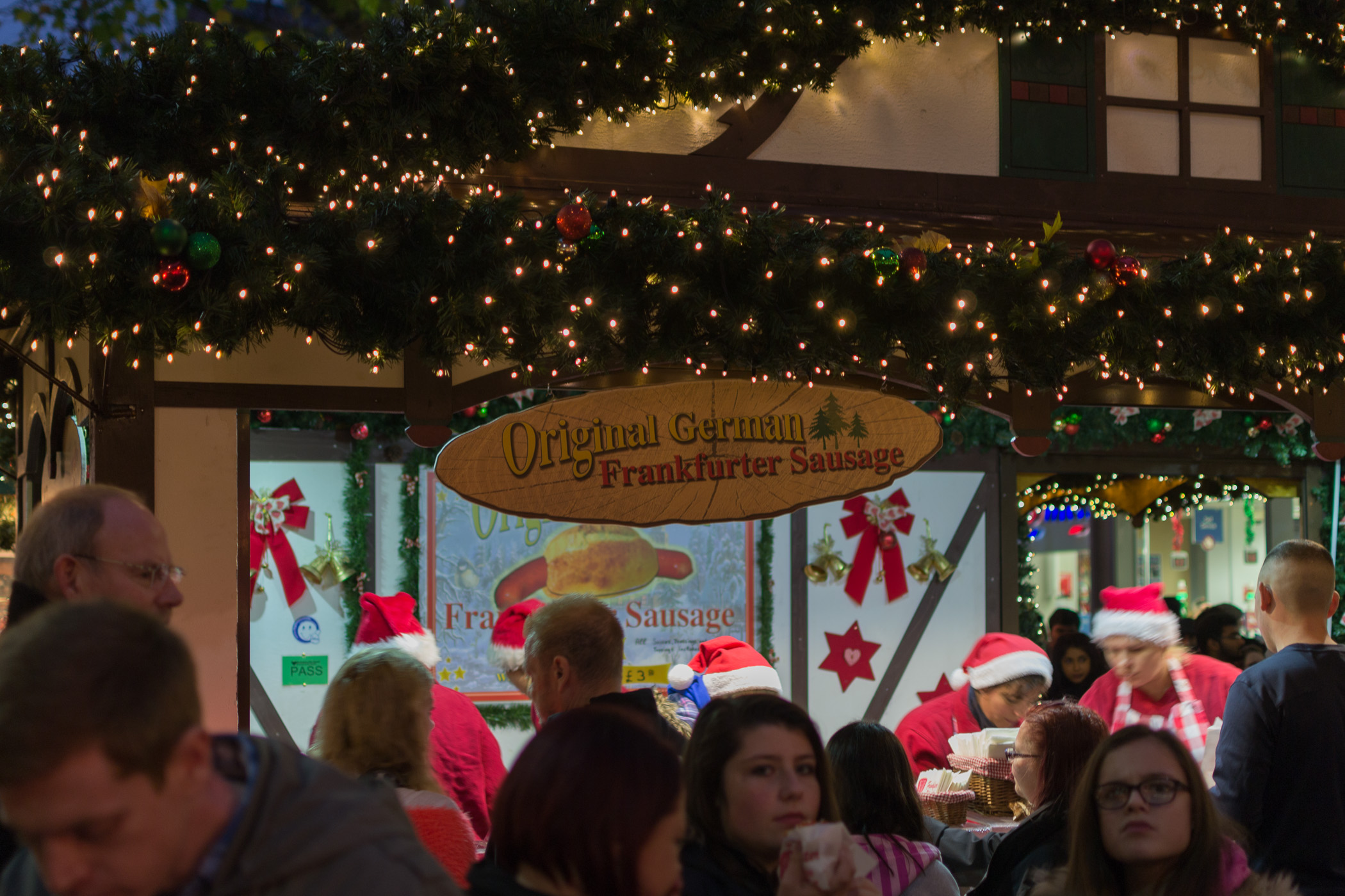 - Original German Sausages, alles deutsch in England auf dem Weihnachtsmarkt