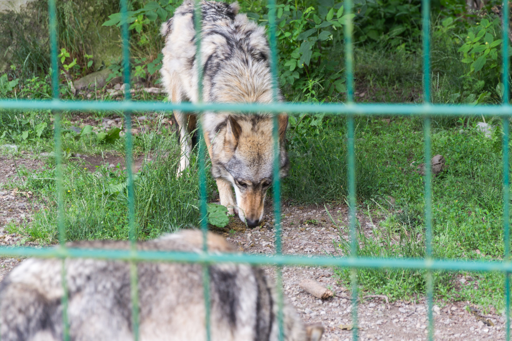 Weiter ging es im erneuten Regen zu den Bären und Wölfen. Hier sind die wilden Wölfe zusammen mit Bären in einem Gehege. Wir sahen einige Wölfe aber nur einen Bären. Auf einmal ging ein Geheule los und wir waren doch überrascht, dass es die Wölfe waren. Es hörte sich auch ganz so an als ob die handaufgezogenen Wölfe von der anderen Seite des Tierparks antworteten.